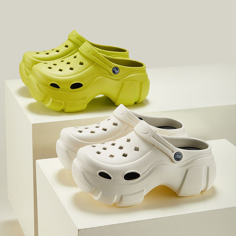 蚂蚁之恋春夏新品潮流简约纯色女款外穿厚底镂空包头洞洞鞋