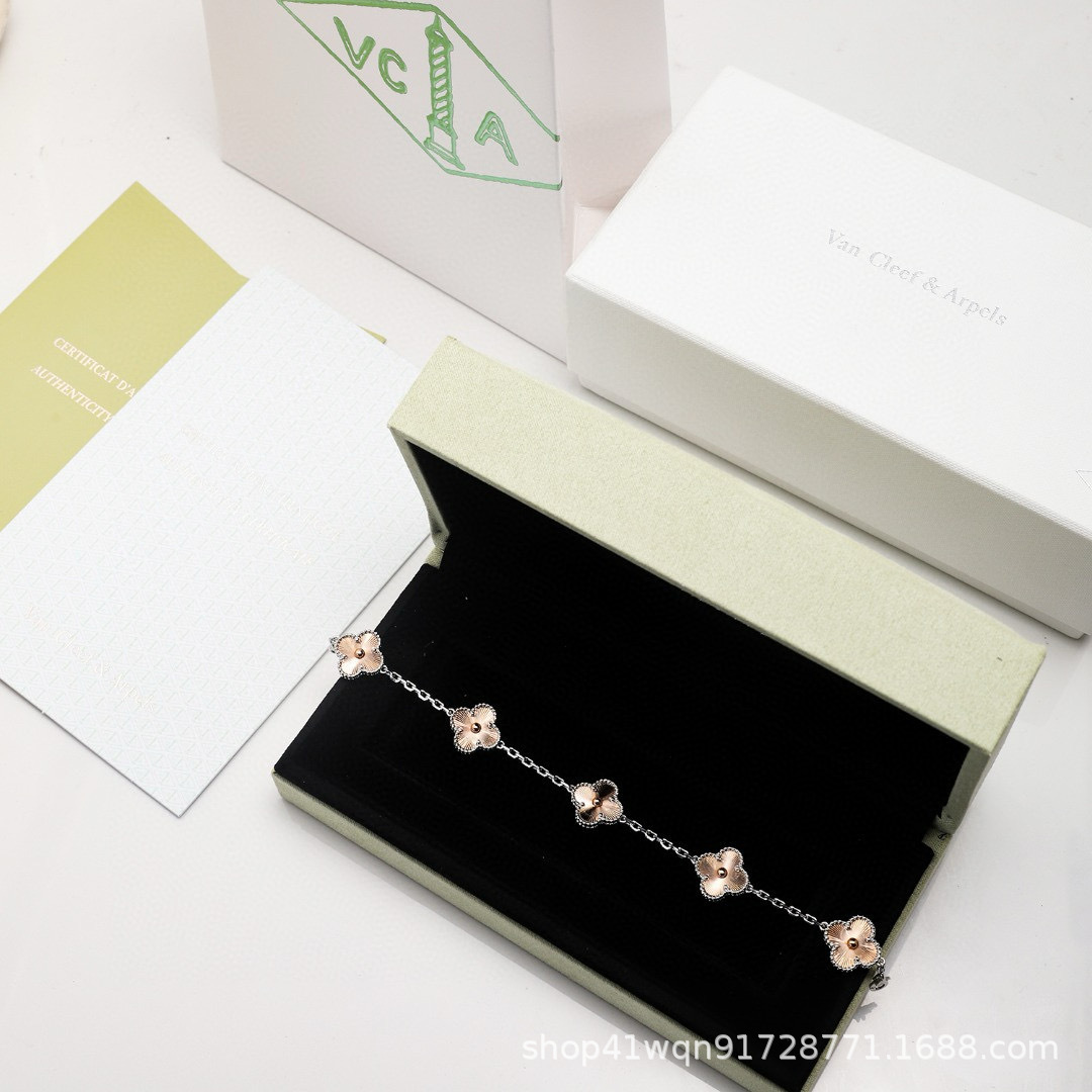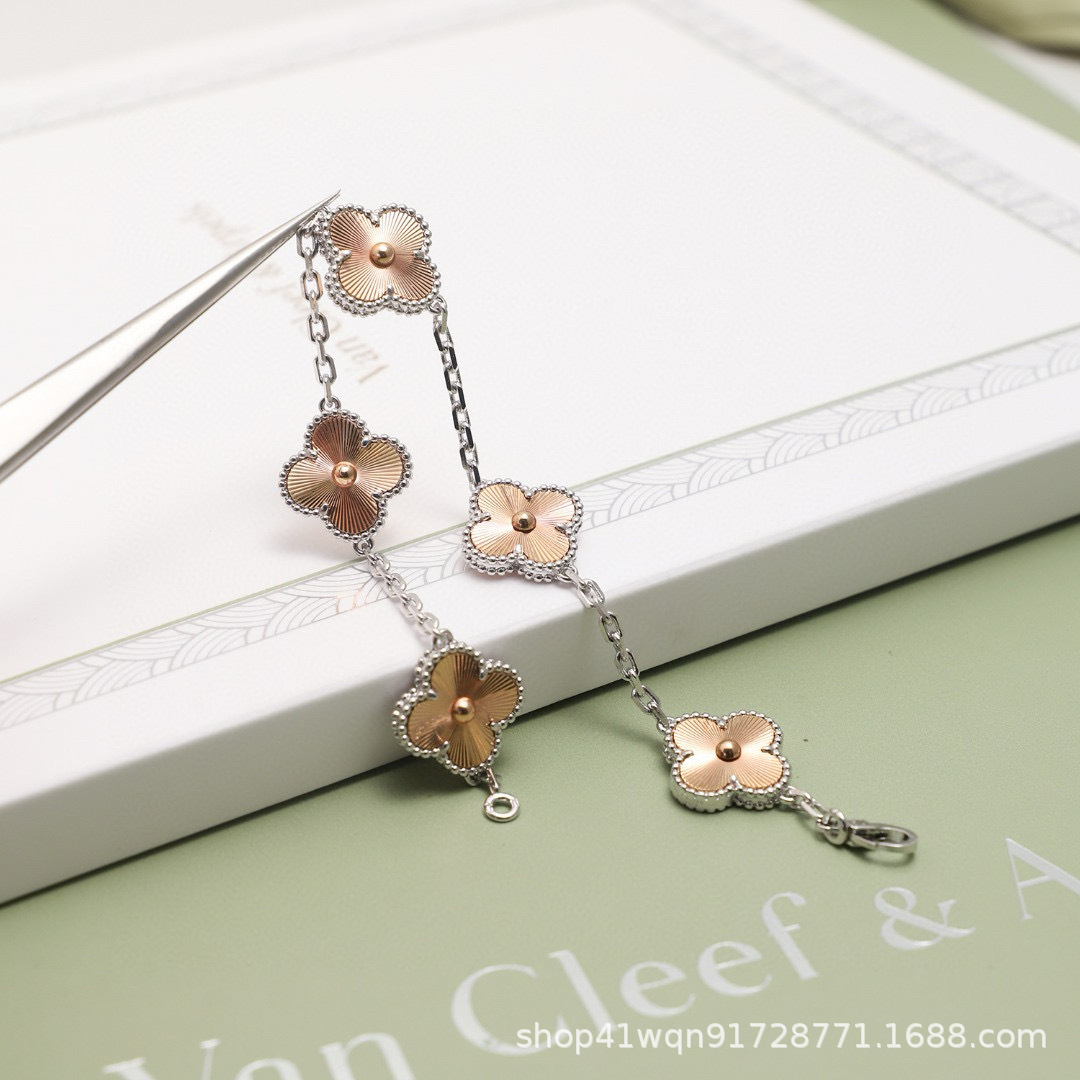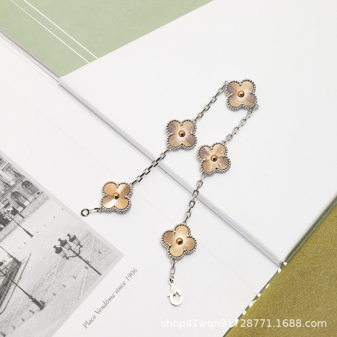 高版四叶草圣诞限定款白金镭射五花手链女合金时尚轻奢高级感手饰