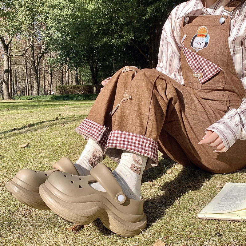 蚂蚁之恋春夏新品时尚简约小蛮腰双色女款外穿洞洞鞋厚底增高
