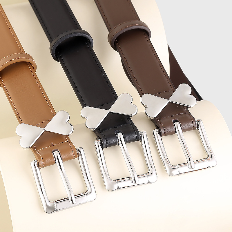 2025新款真皮皮带女百搭时尚桃心扣装饰收腰牛仔裤腰带女