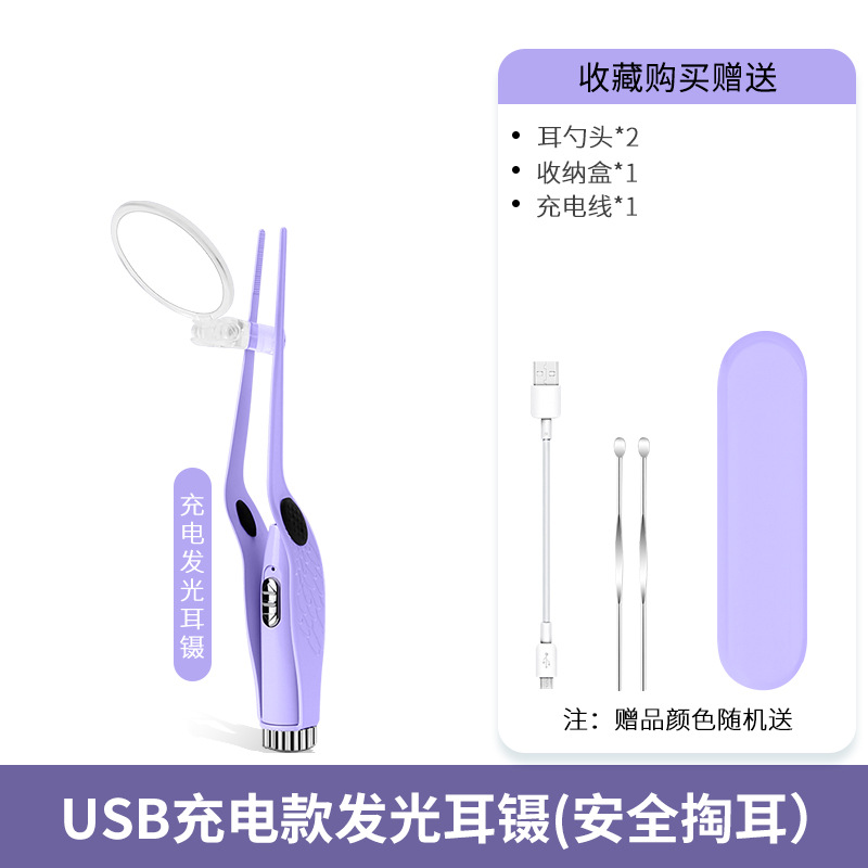 充电USB接口掏耳勺发光耳勺宝宝挖耳勺耳屎镊子套装采耳带灯
