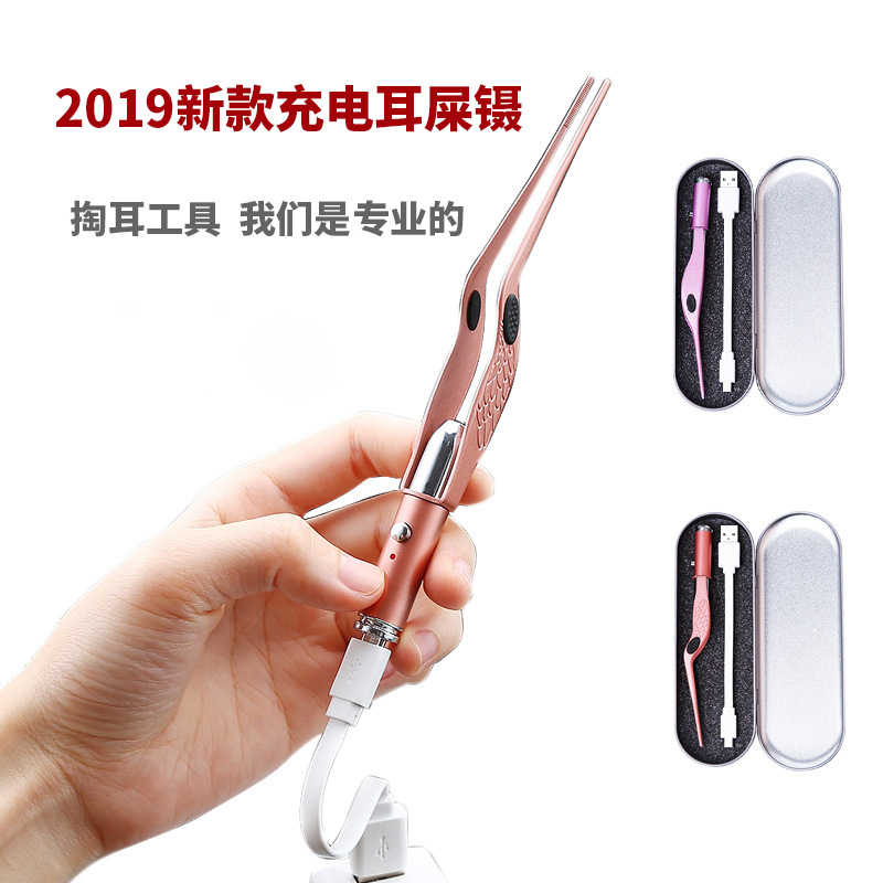 USB充电采耳镊子 儿童发光耳勺带灯耳屎镊子掏耳器可视采耳工具