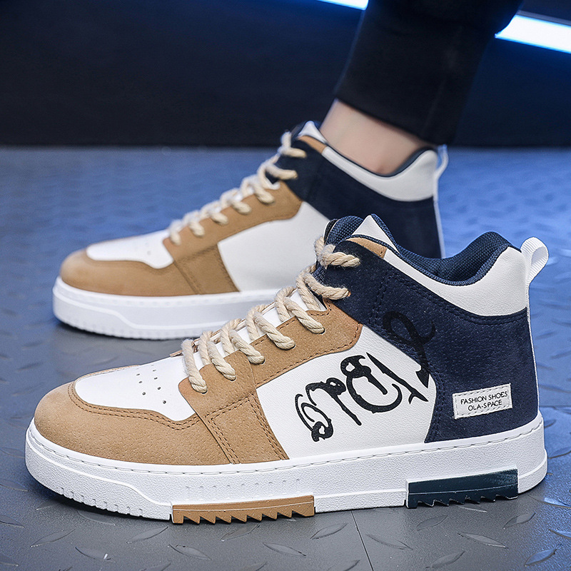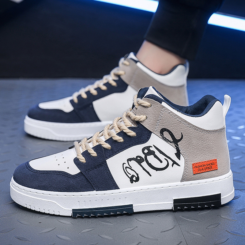 春季高帮鞋男鞋透气潮流百搭板鞋男生休闲初中生运动潮鞋鞋子男款