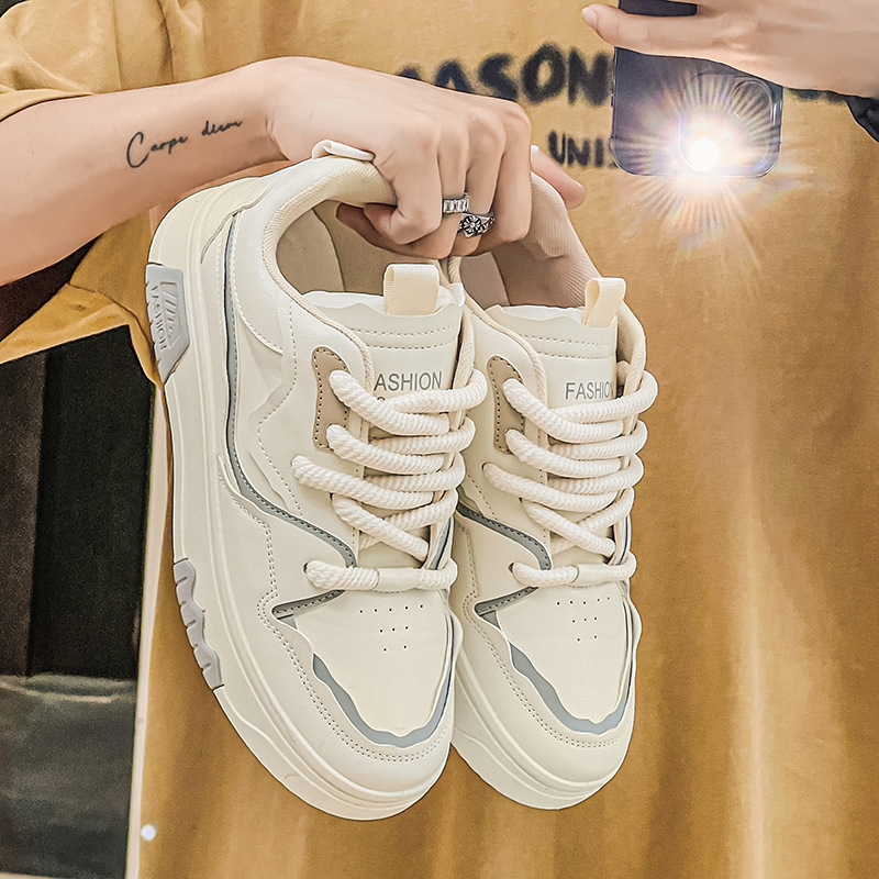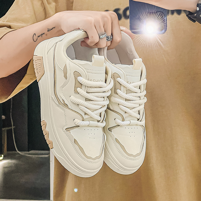 运动板鞋男款秋季小众设计超火面包鞋休闲鞋秋季皮面防水潮鞋
