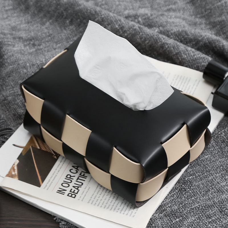 黑白棋盘格纸巾盒客厅茶几餐桌抽纸盒bv编织皮革纸抽盒汽车专用