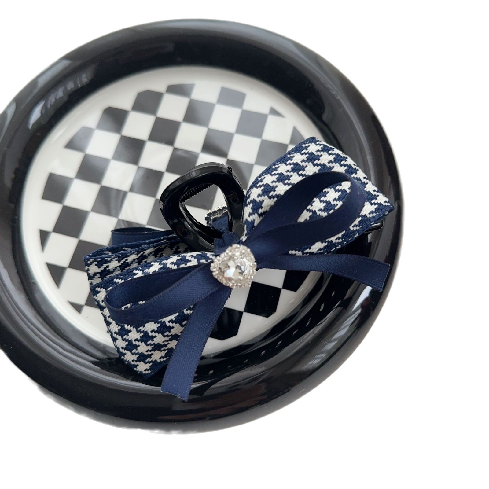 轻奢复古千鸟格蝴蝶结抓夹水钻爱心鲨鱼夹后脑勺盘发夹百搭气质款