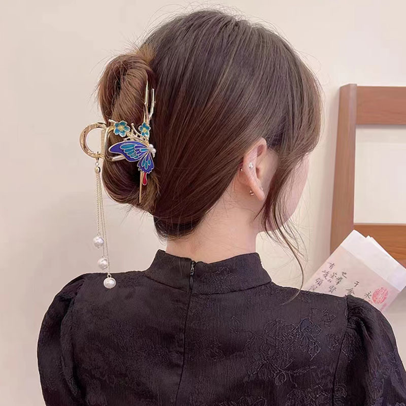 蝴蝶滴油国苏大号鲨鱼夹丸子头盘发古风发夹温柔发饰气质发抓