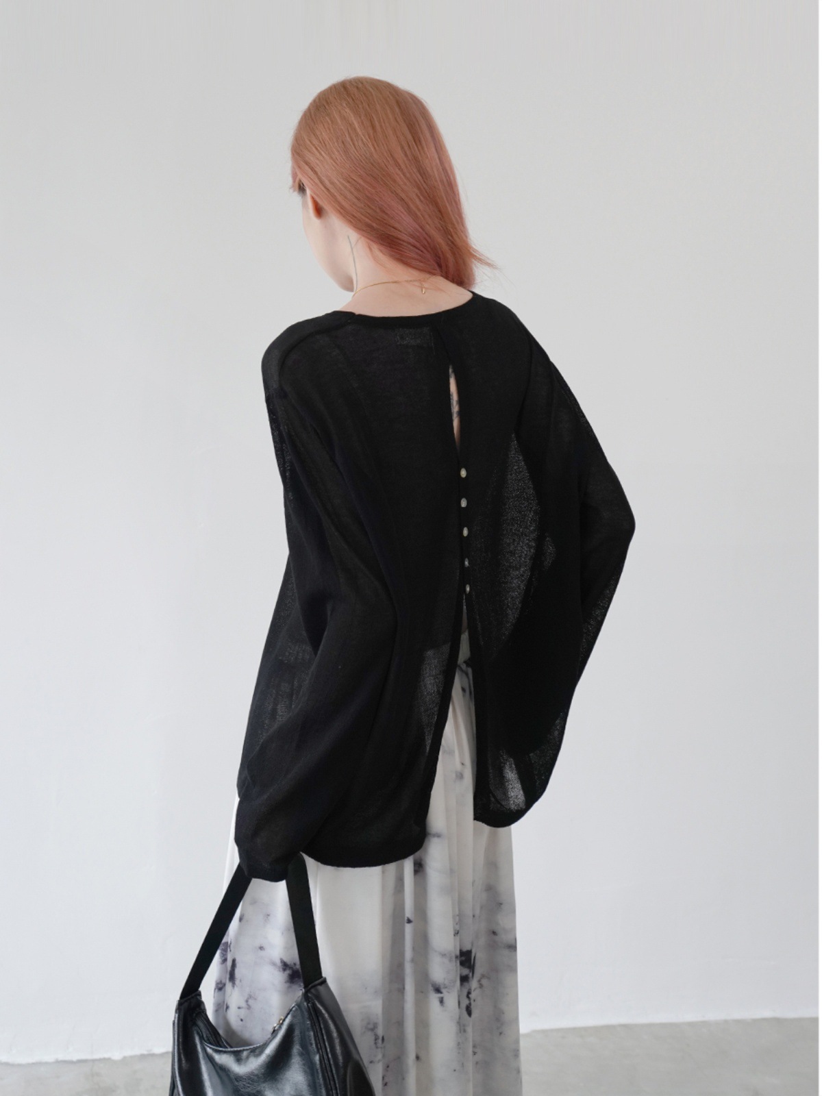 后背开叉薄款防晒衫女夏新款针织打底衫宽松T恤简约罩衫长袖上衣