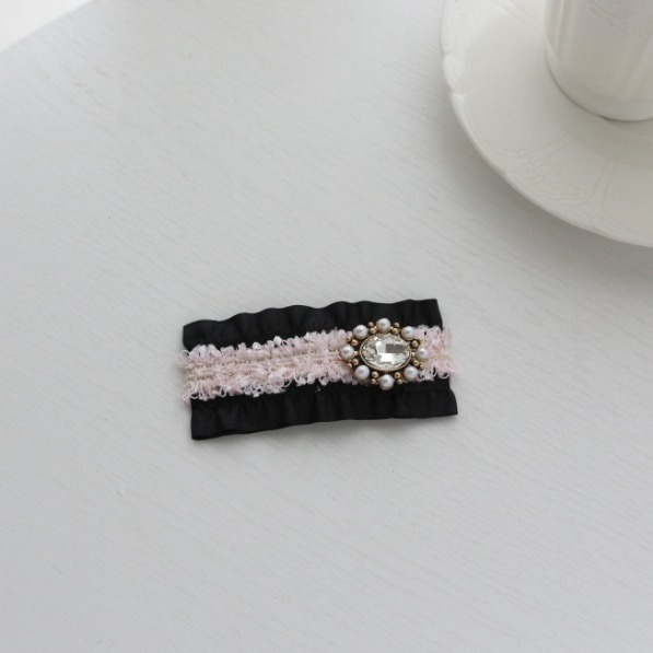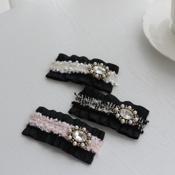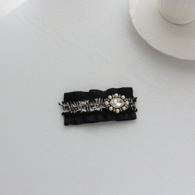 韩版发饰宝石粗花呢对夹侧边夹拜拜夹洋气花边BB百搭小众轻奢