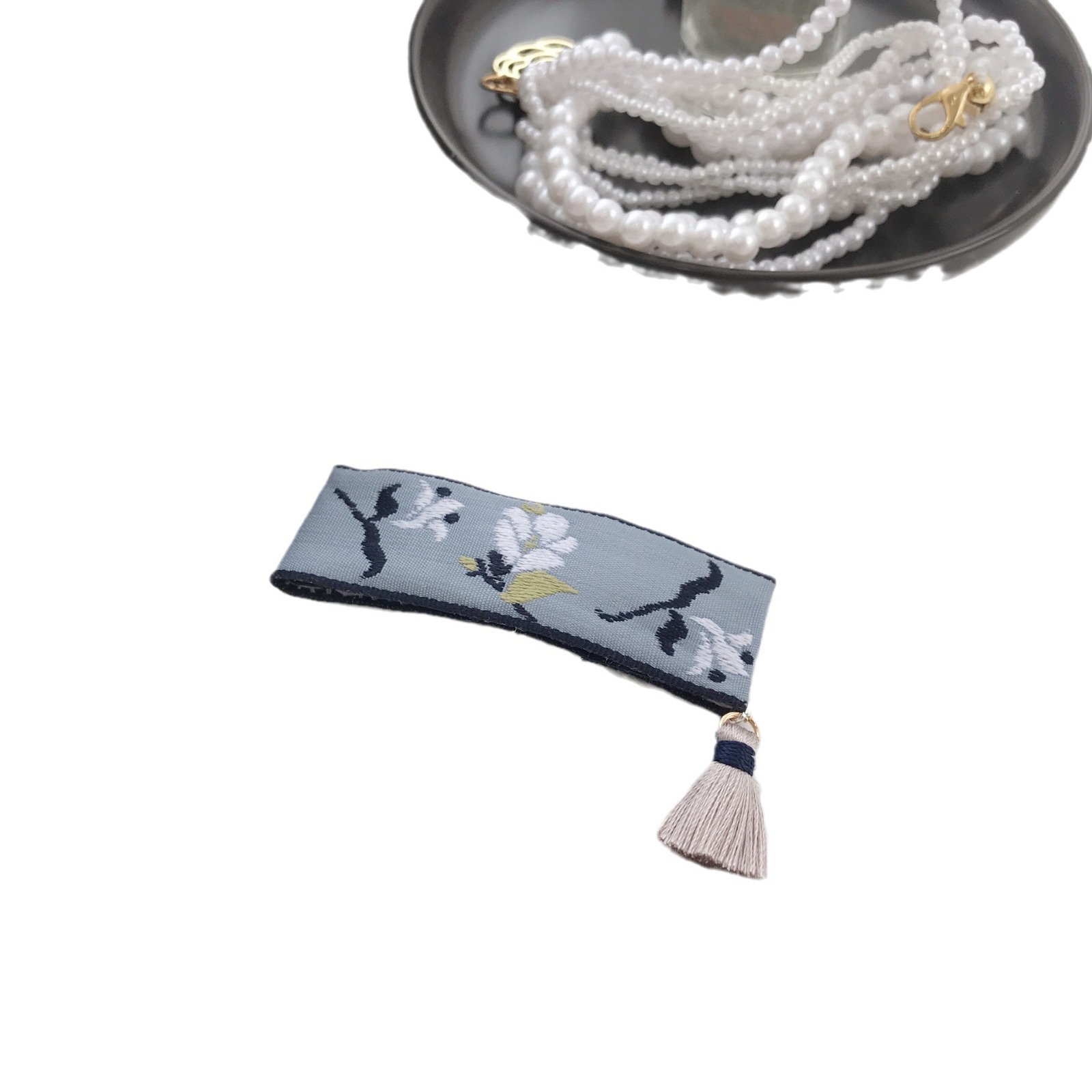 手作气质玉兰花刺绣发饰花边BB夹对夹侧边刘海夹发箍女生高颜值