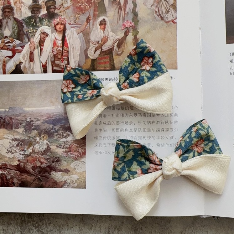 白色蕾丝蝴蝶结发夹奶油缎面对夹BB夹可爱儿童发饰甜美女孩碎发夹