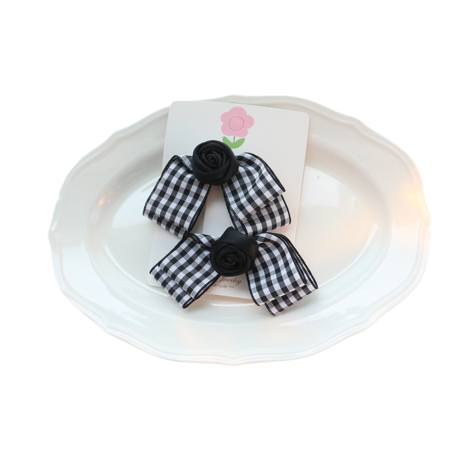 学院风优雅格子蝴蝶结头饰辫子鸭嘴夹对夹BB夹甜美可爱玫瑰花