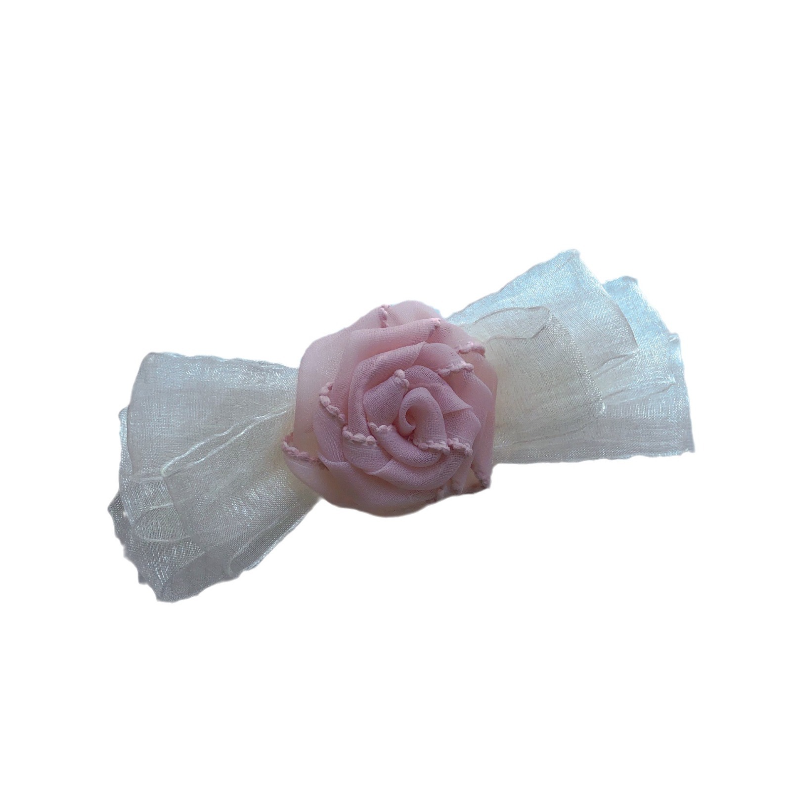 可爱女孩发饰手工白纱蝴蝶结粉花头饰辫子发圈发夹鸭嘴夹弹簧夹