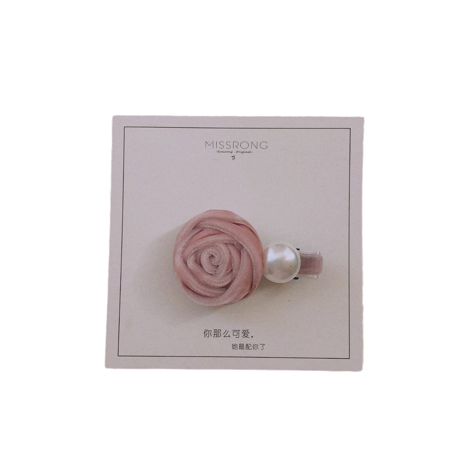 手作洋气丝绒粉玫瑰发夹抓夹珍珠鸭嘴夹边夹高颜值女生百搭发饰