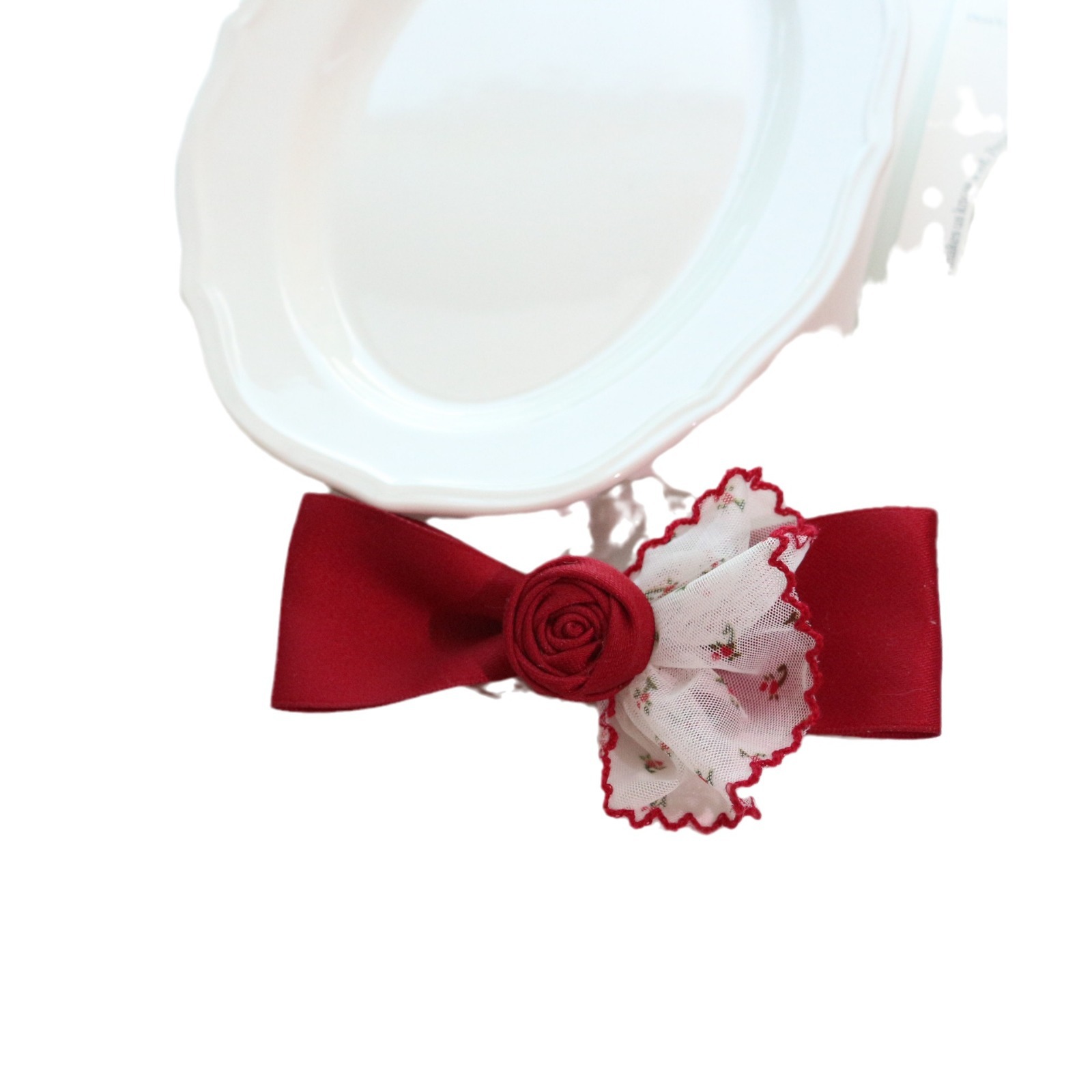 韩系高奢红玫瑰花朵发夹少女甜美蝴蝶结辫子发圈鸭嘴夹后脑勺发饰