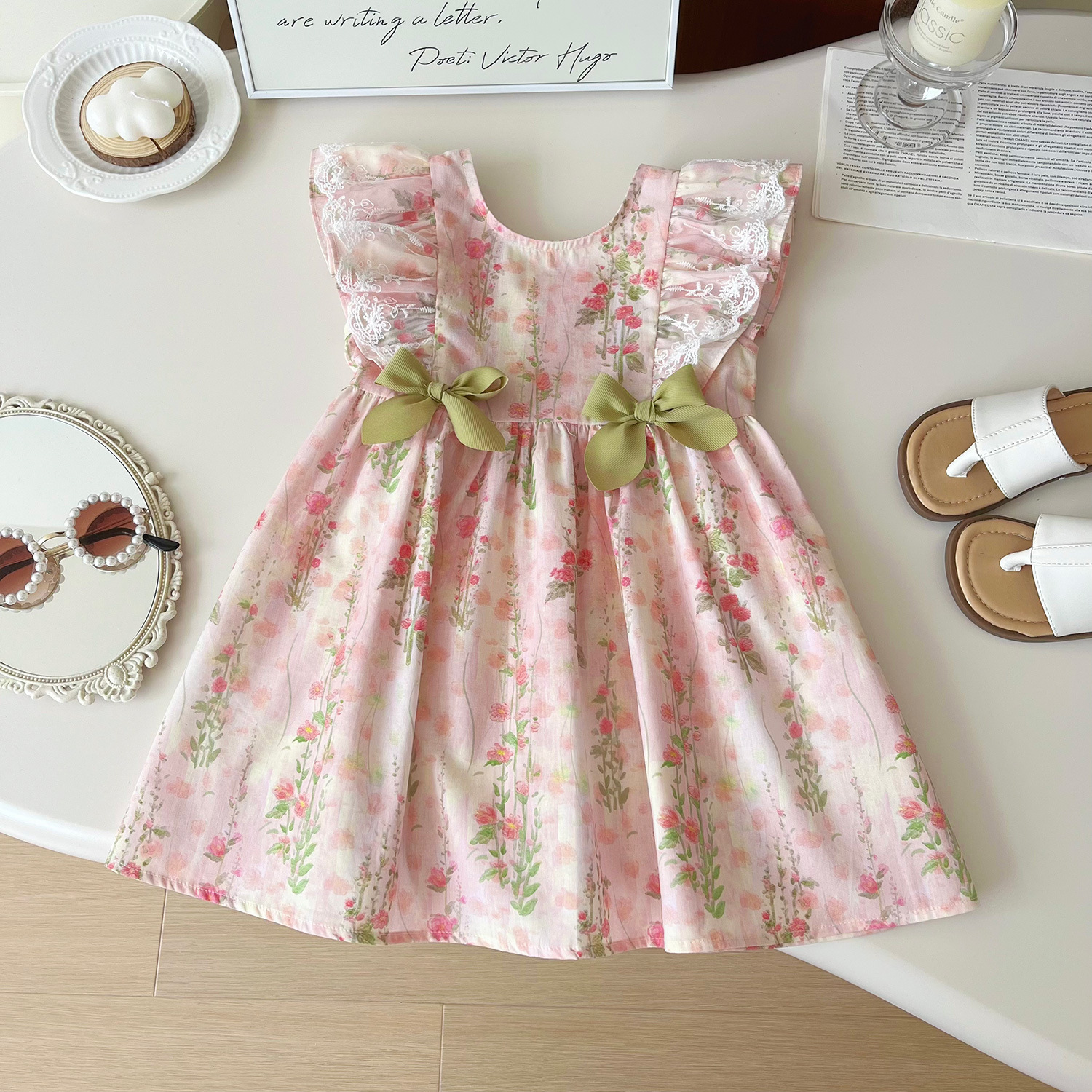 2025夏季新款韩版女童露背童裙宝可爱印花无袖木耳边中小童连衣裙