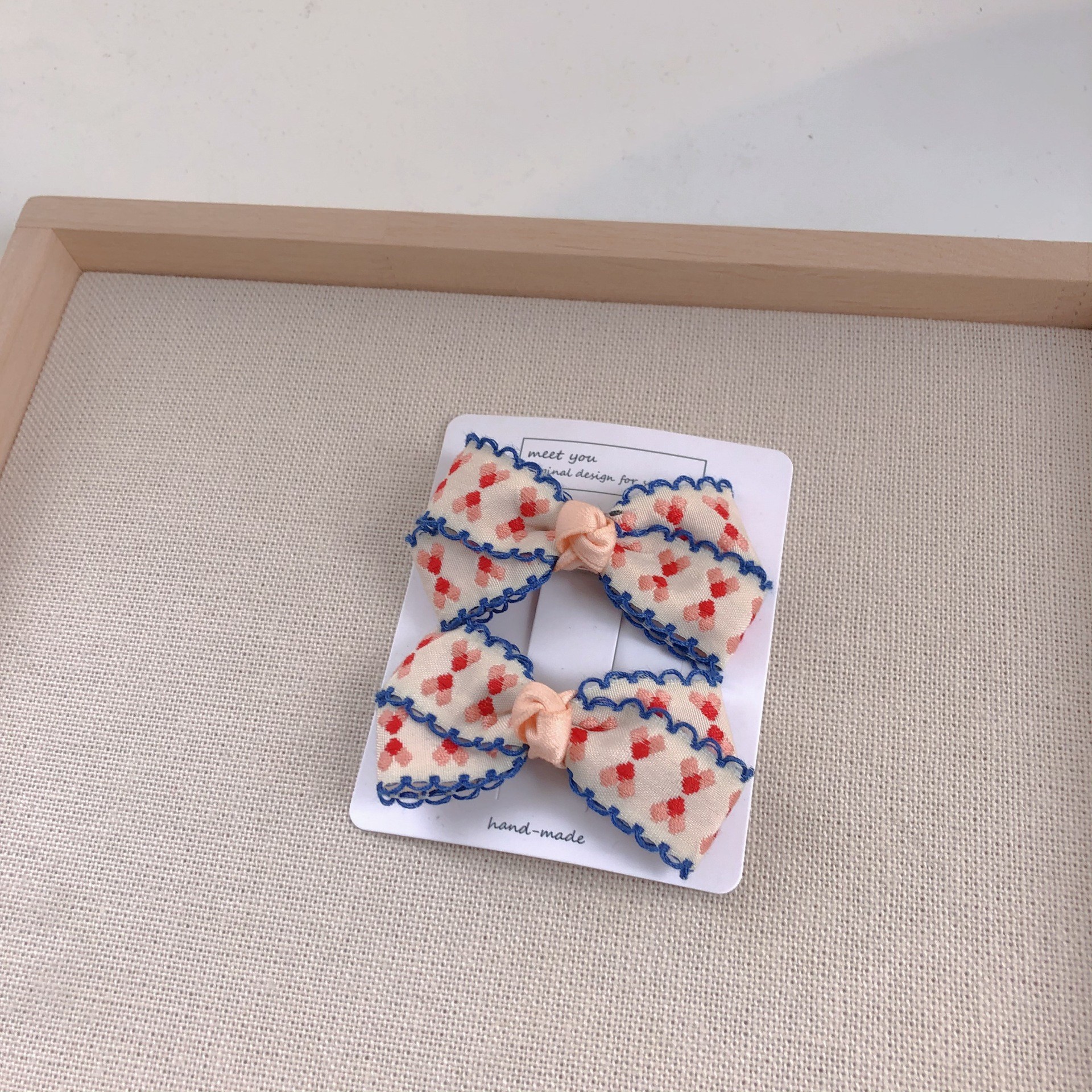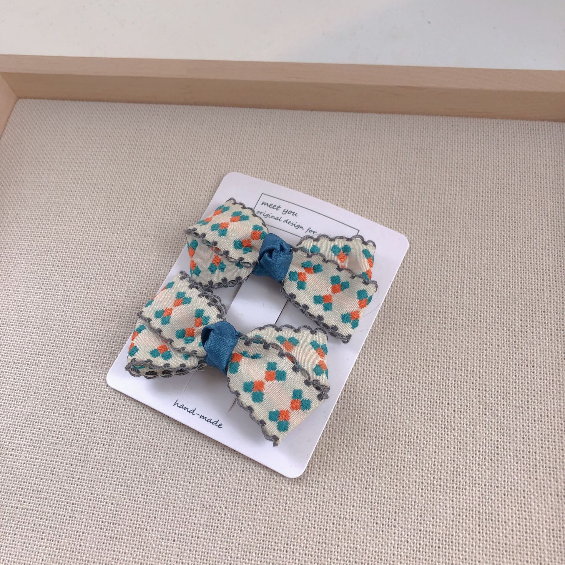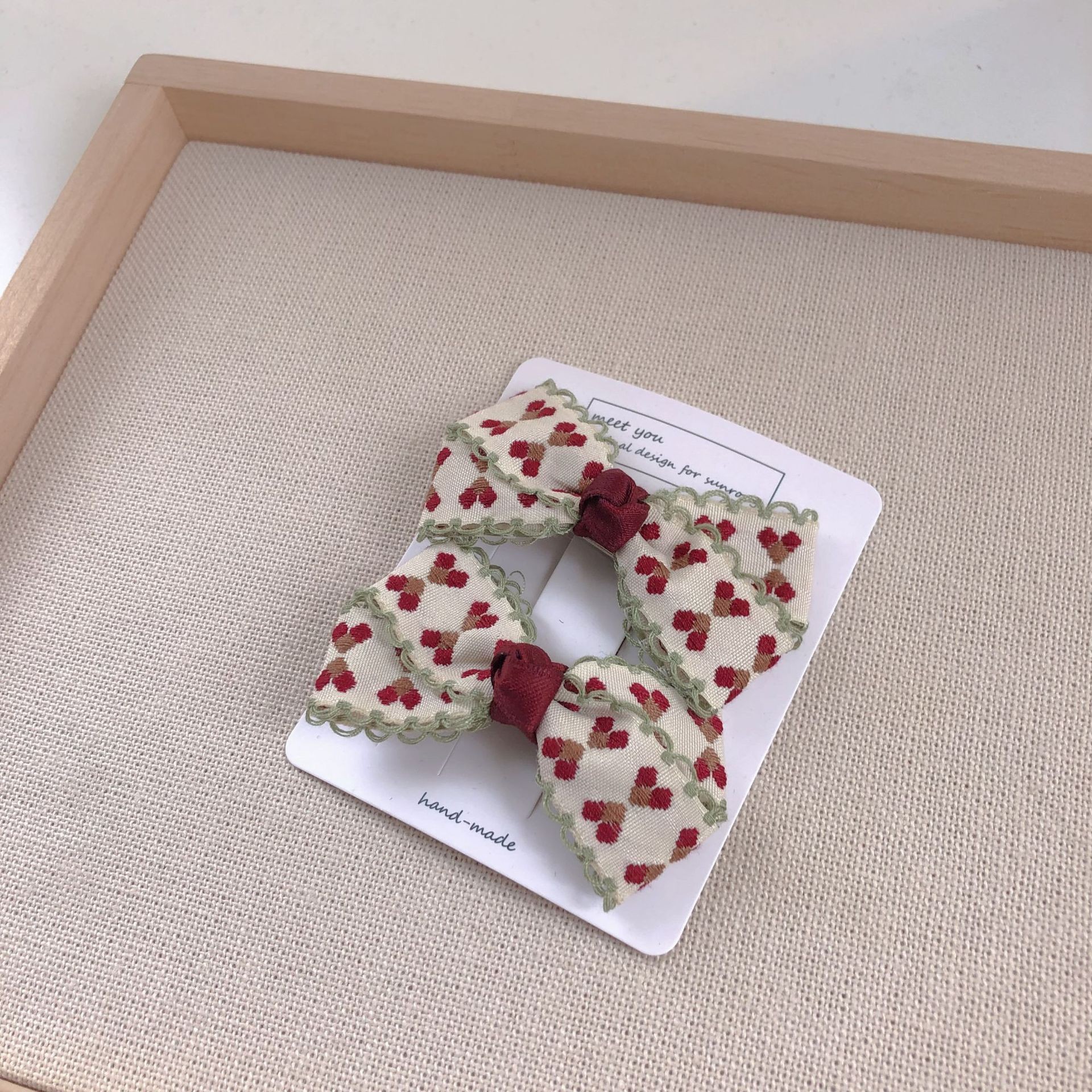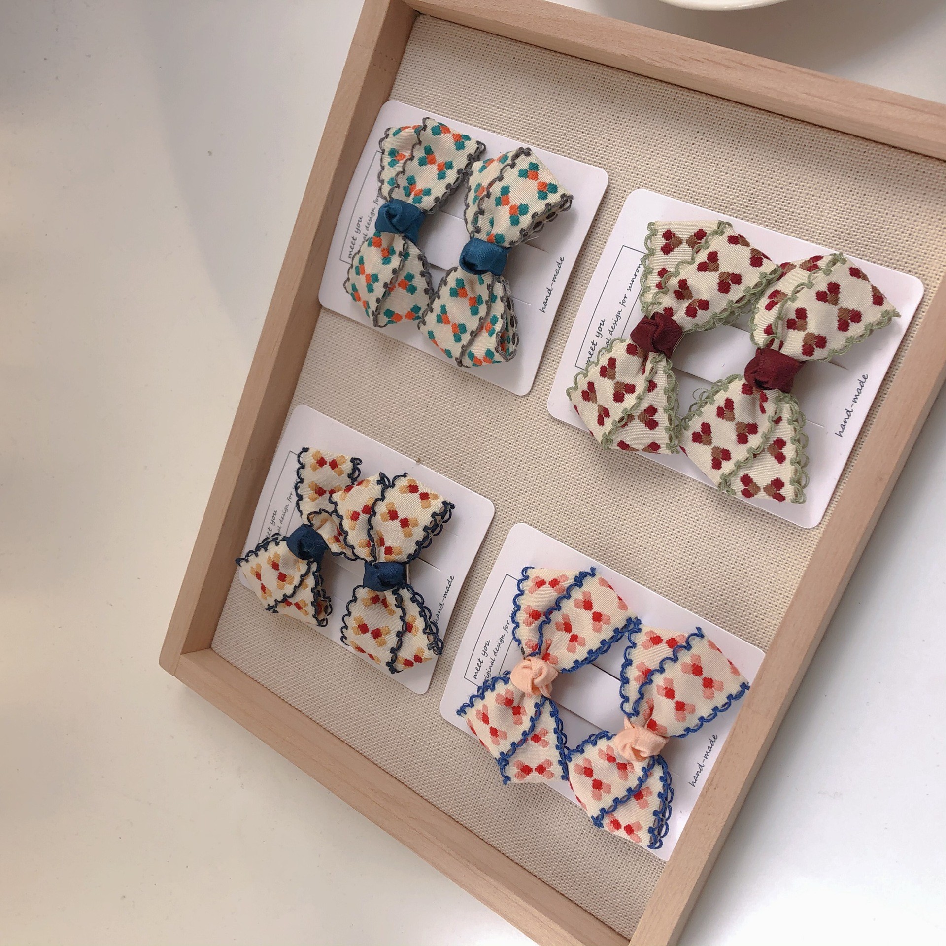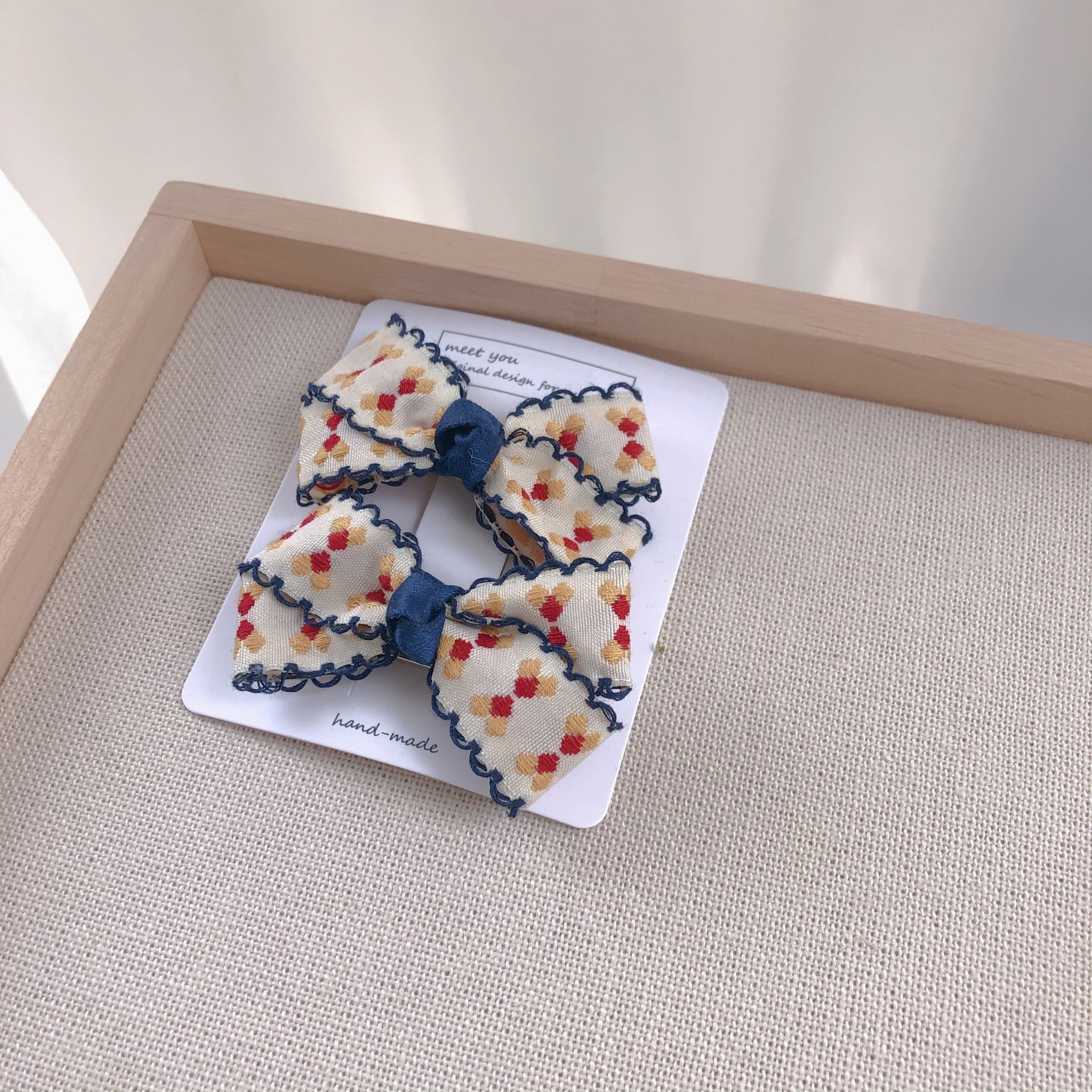韩版可爱儿童发夹小清新蝴蝶结对夹早秋新款刺绣质感小发夹简约