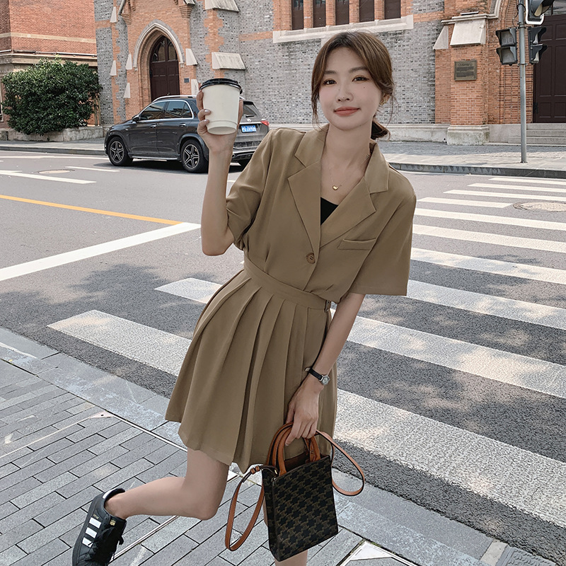 高级感时尚短款休闲外套西装裙套装女简约宽松显瘦显高新款两件套