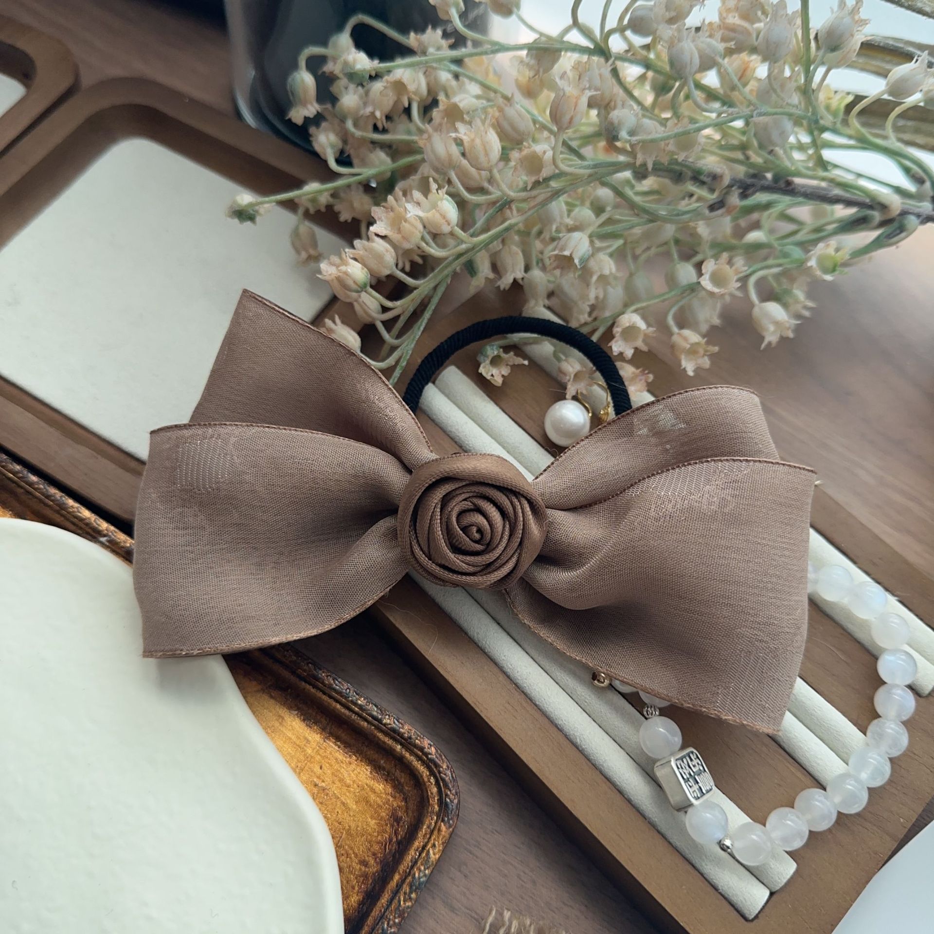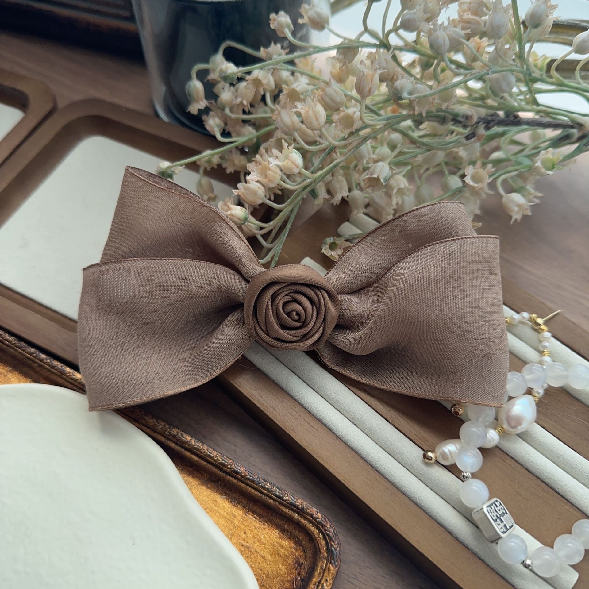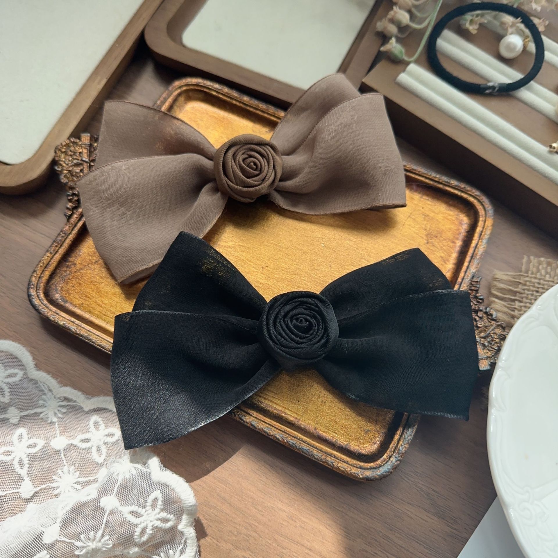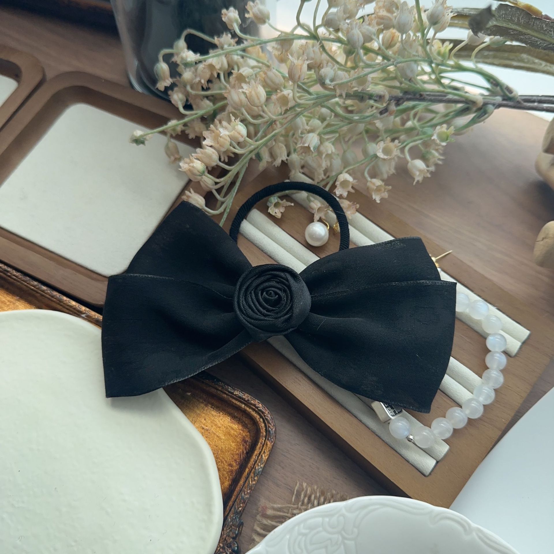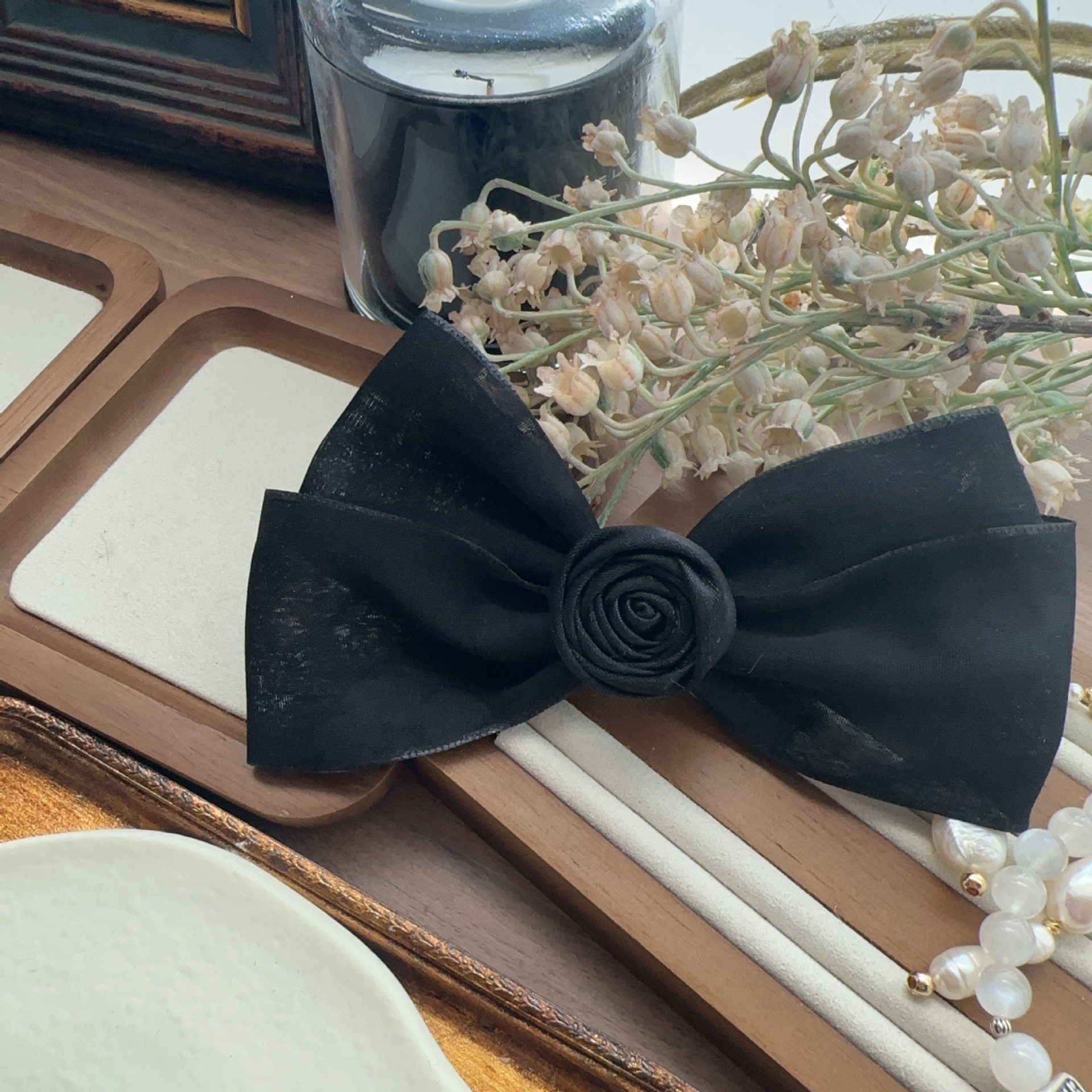 轻奢纯色大蝴蝶结发夹学院风马尾发饰鸭嘴夹少女发圈皮筋发卡