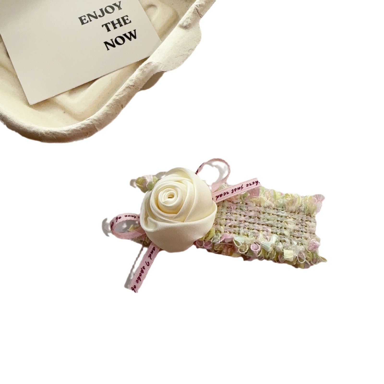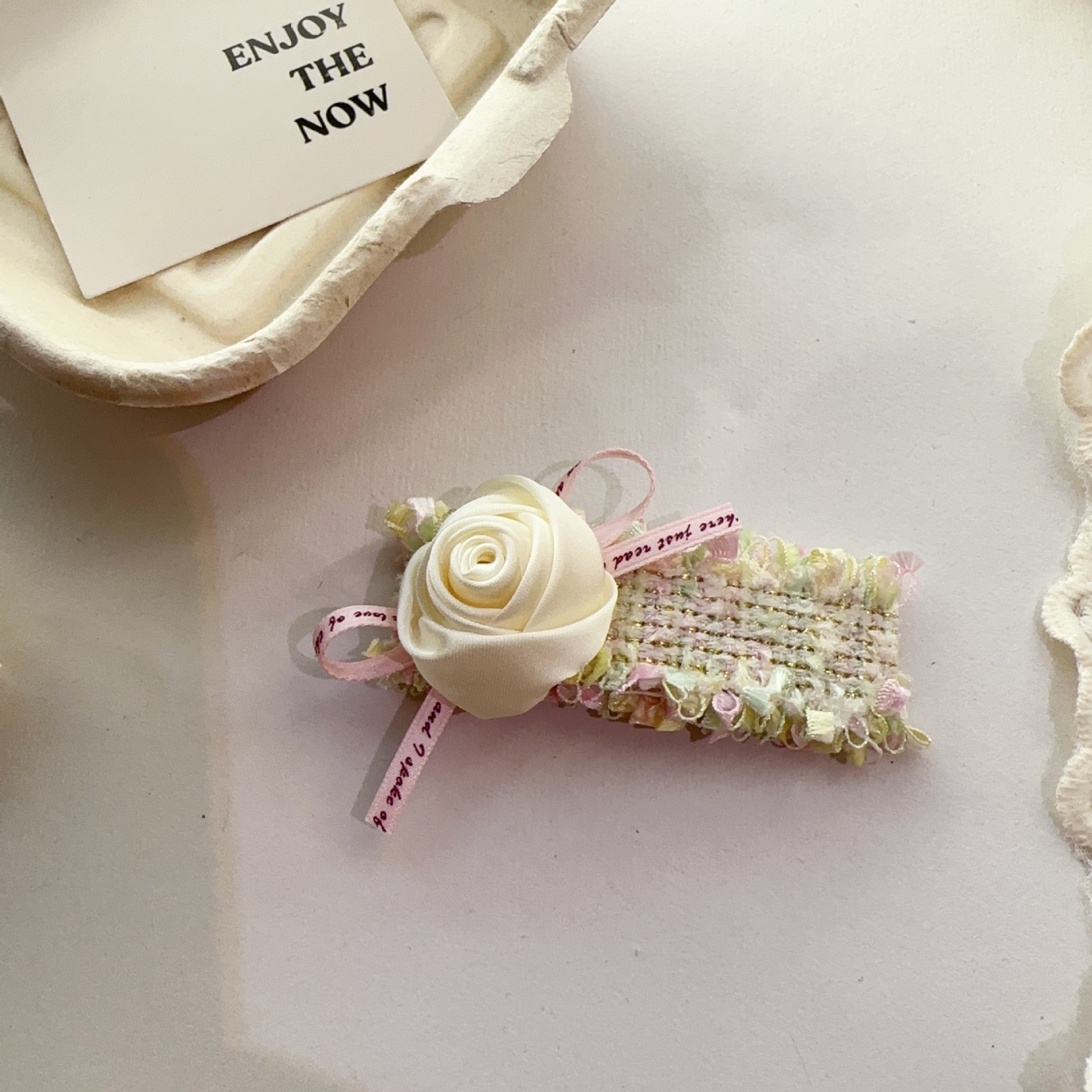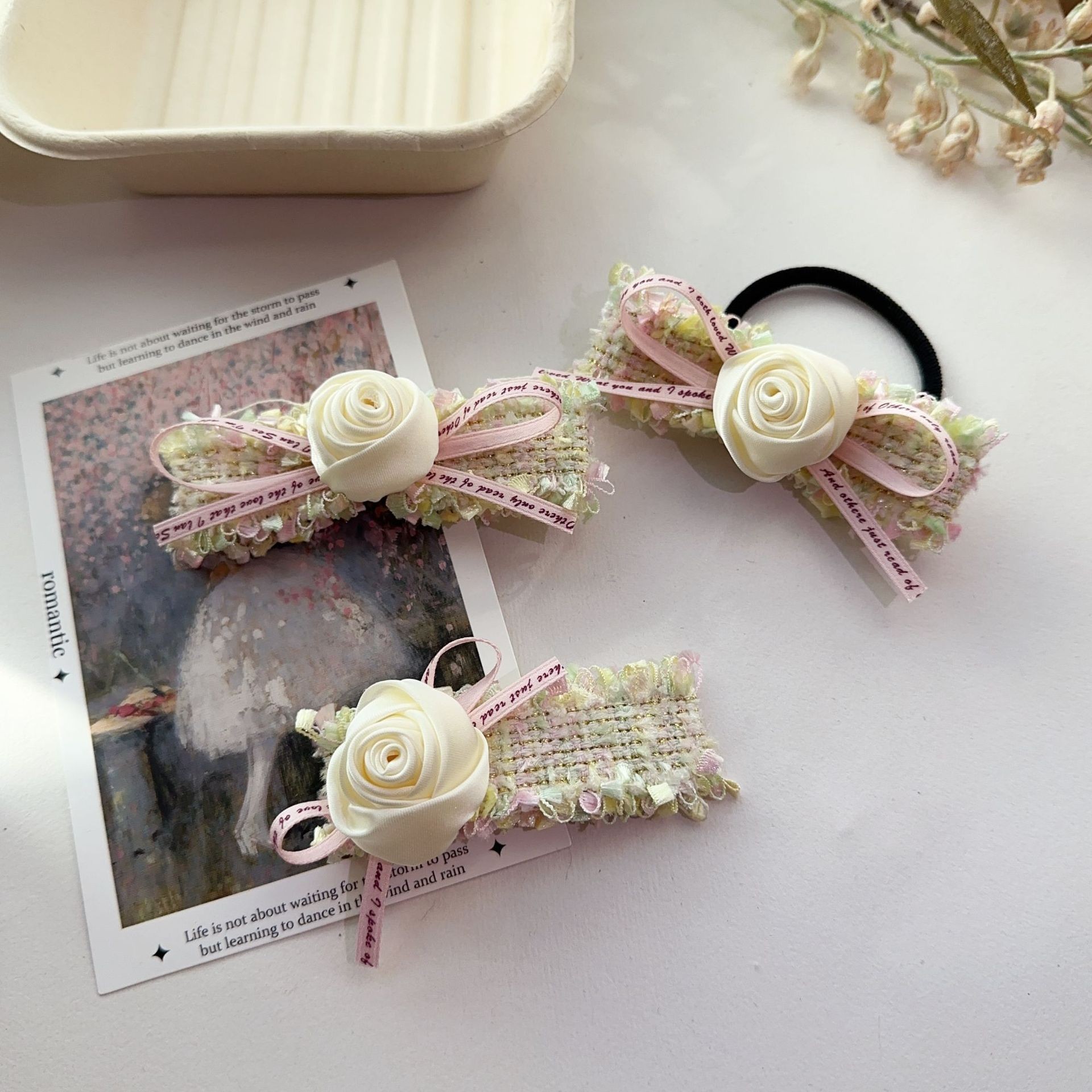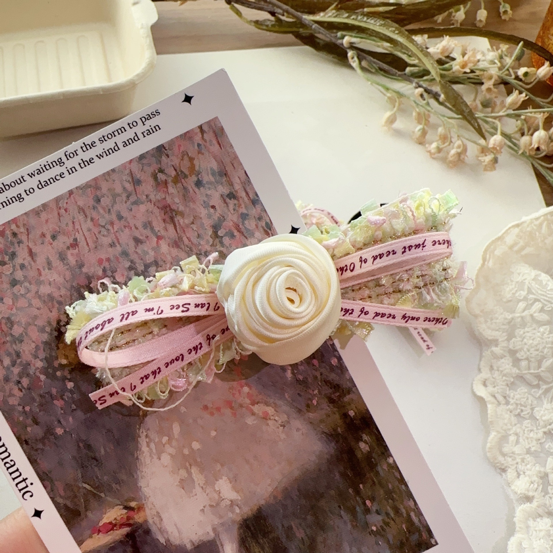 可爱儿童发饰丝滑奶油玫瑰手工蝴蝶结发圈边夹辫子鸭嘴夹拜拜夹