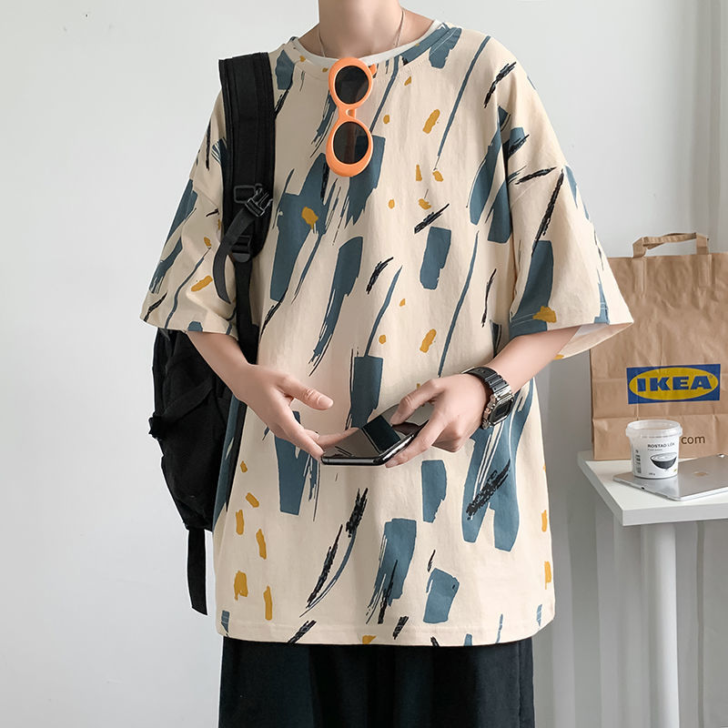 短袖T恤男夏季新款港风扎染潮牌宽松痞帅半袖上衣ins五分