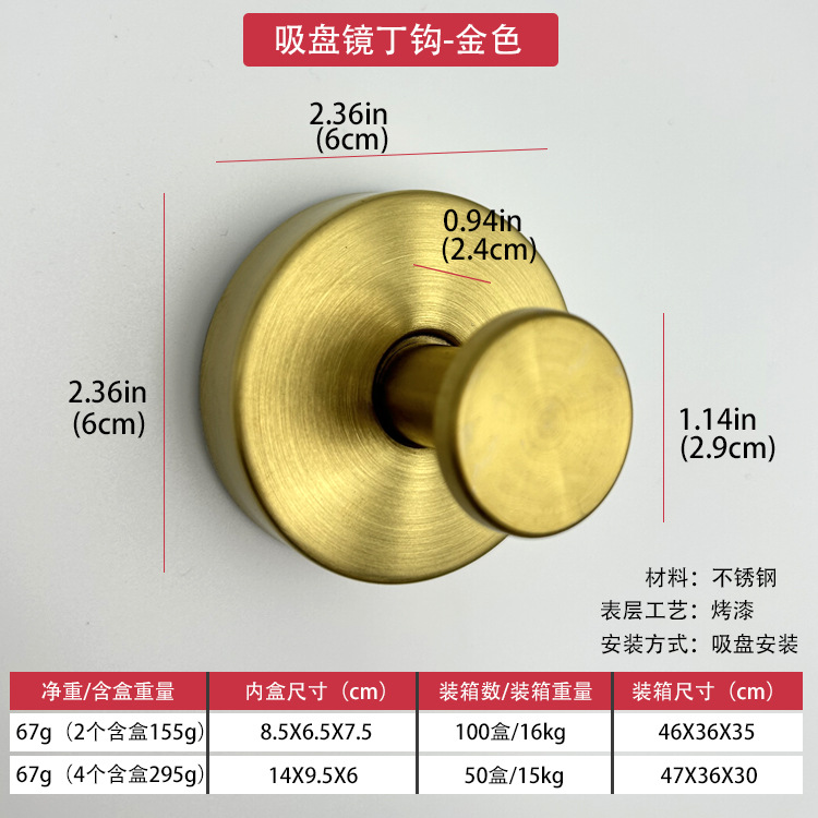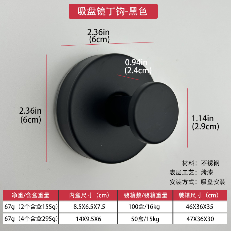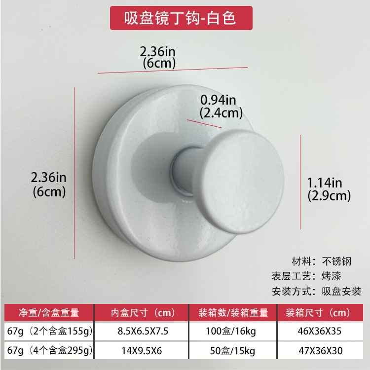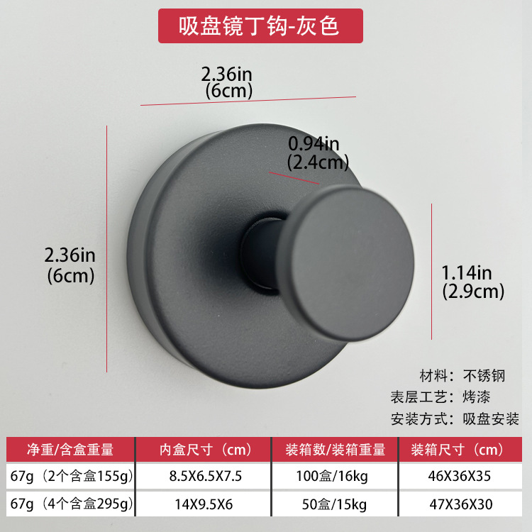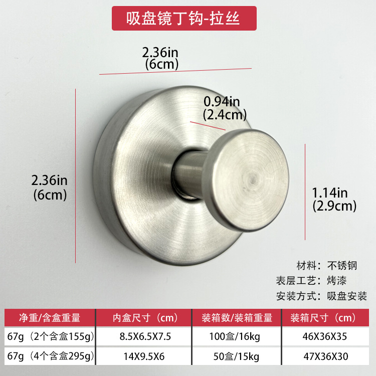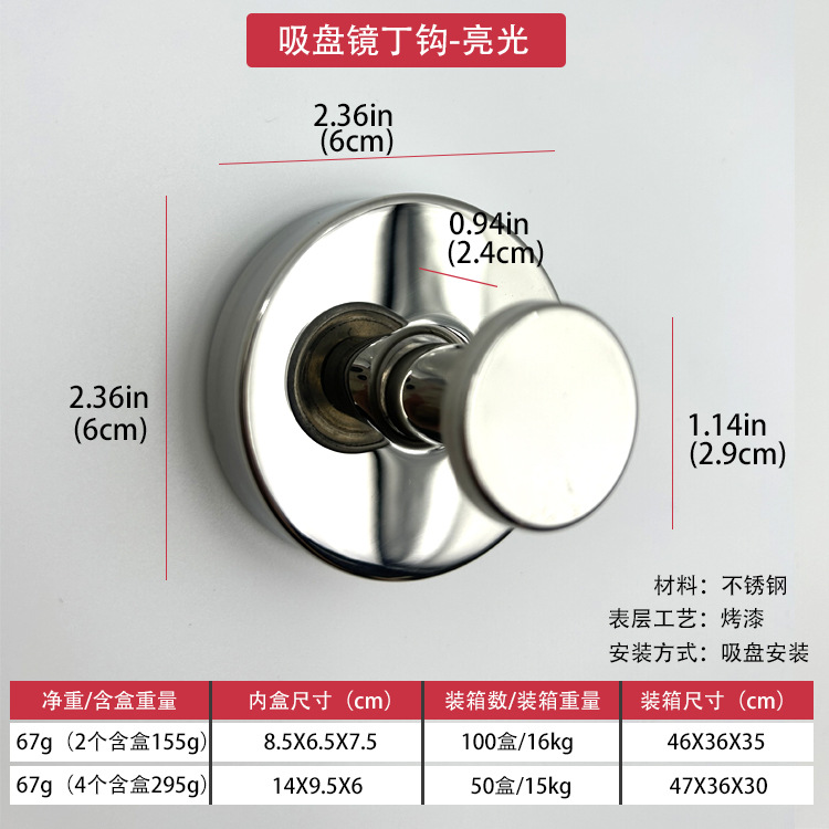 跨境不锈钢吸盘单钩无痕强力衣帽钩卫生间浴室挂衣钩免打孔粘钩