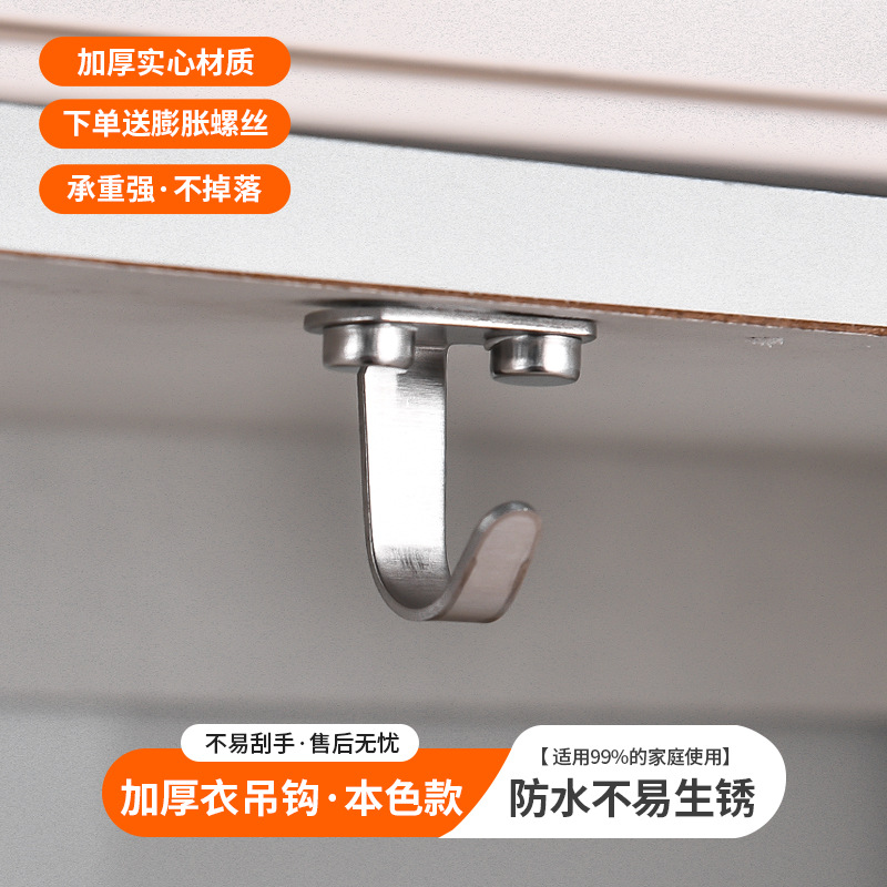 批发不锈钢挂衣钩 顶装挂钩实心钩 家庭酒店厨房浴室单钩挂件