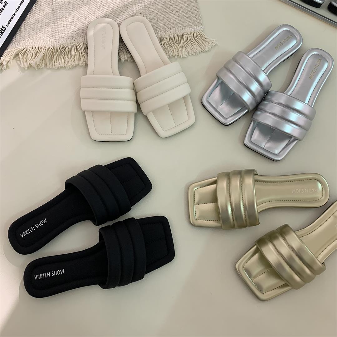 沙滩拖鞋外穿女鞋子春夏新款软平底踩屎感露趾一字凉拖凉鞋