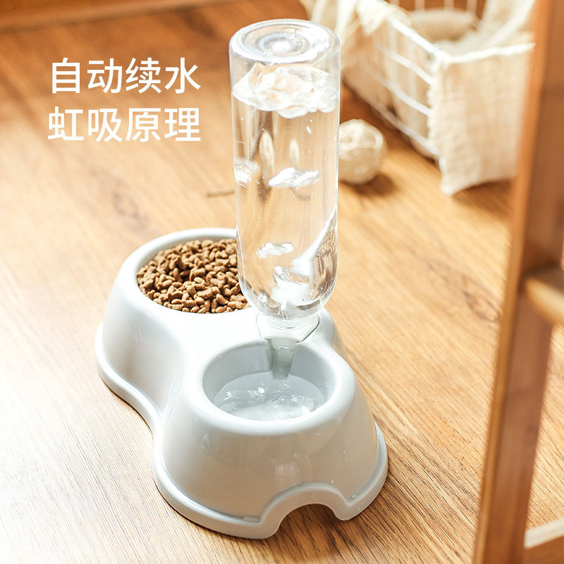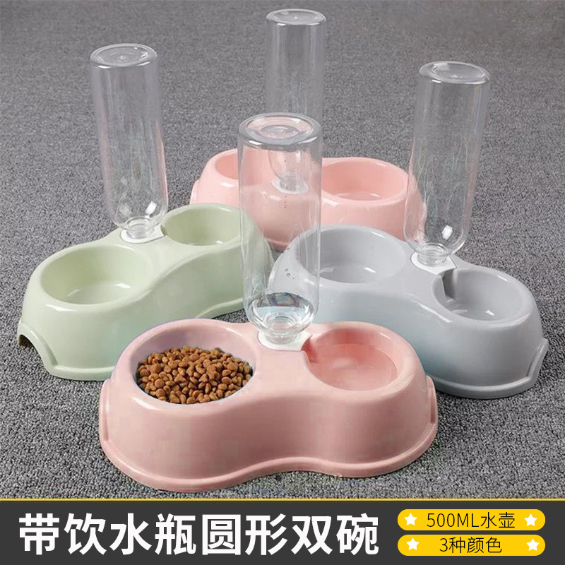 厂家直销塑料狗碗双碗猫食碗自动饮水器宠物塑料碗带水壶套装