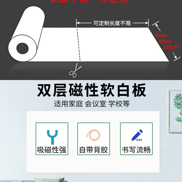 班级公开课磁贴白板方形墙贴磁性贴儿童软白板磁吸黑板化妆批发