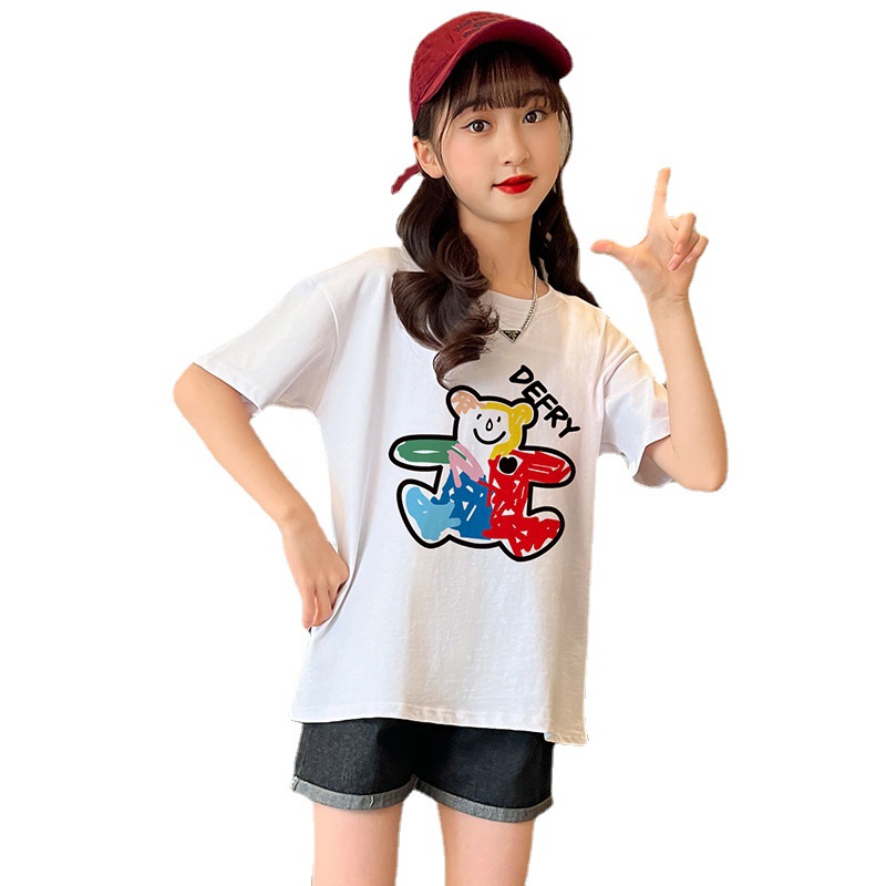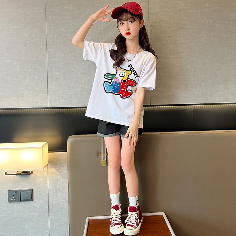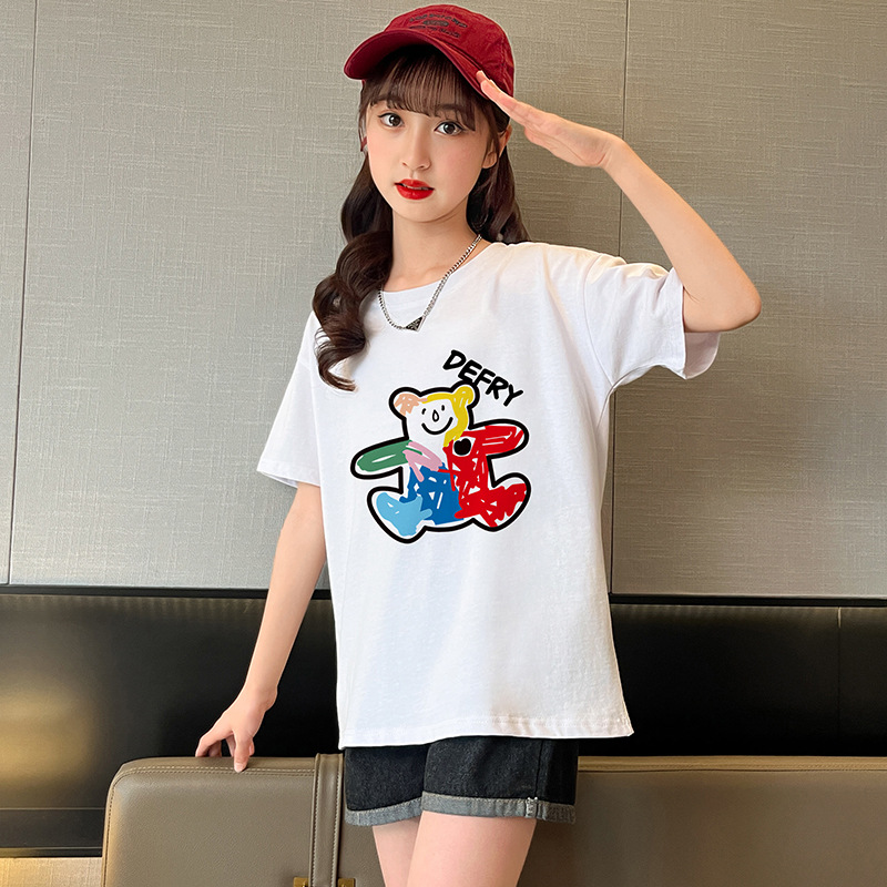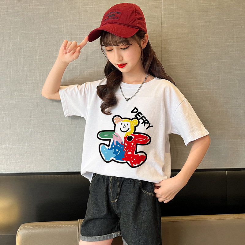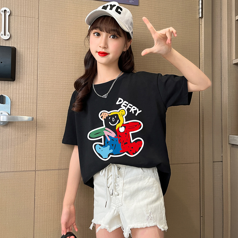 童装女童夏装短袖T恤新款宽松卡通印花儿童女孩夏季潮服大童帅气