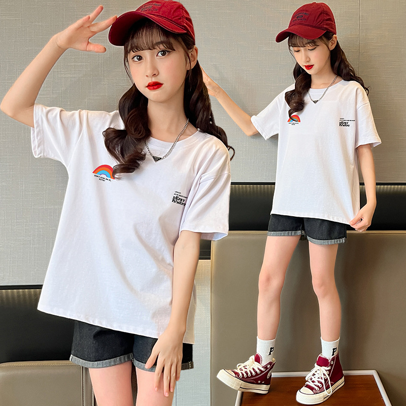 女童短袖t恤夏季新款休闲儿童装半袖上衣炸街中大童女孩夏装INS潮