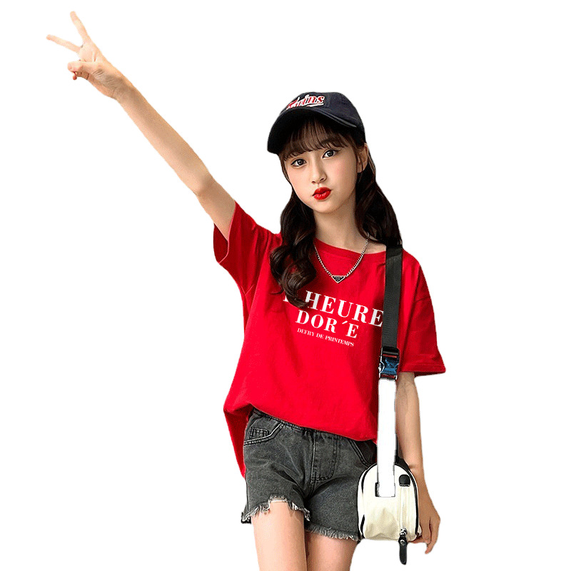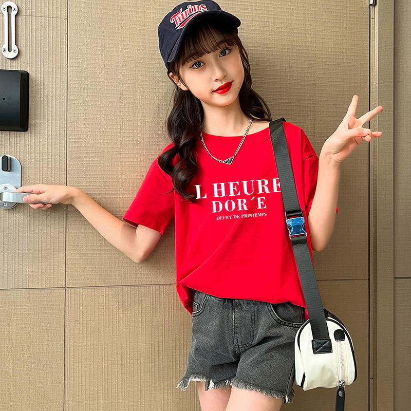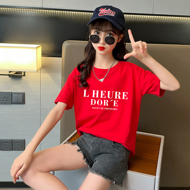 女童短袖T恤纯棉夏季新款中大童姐妹字母印花宽松时尚半袖上衣