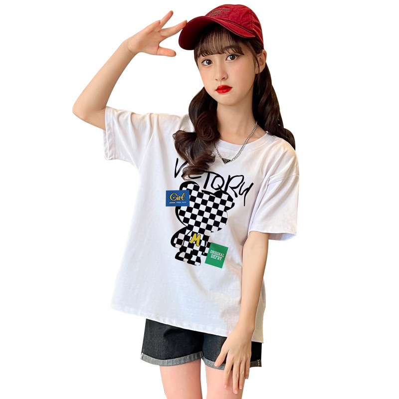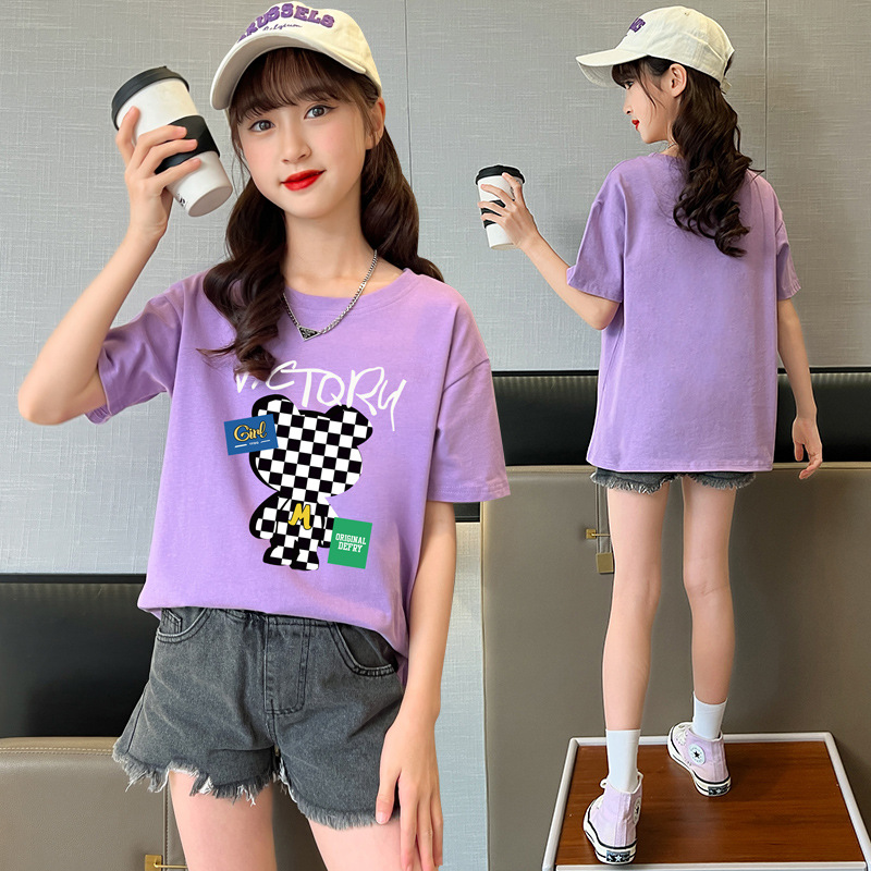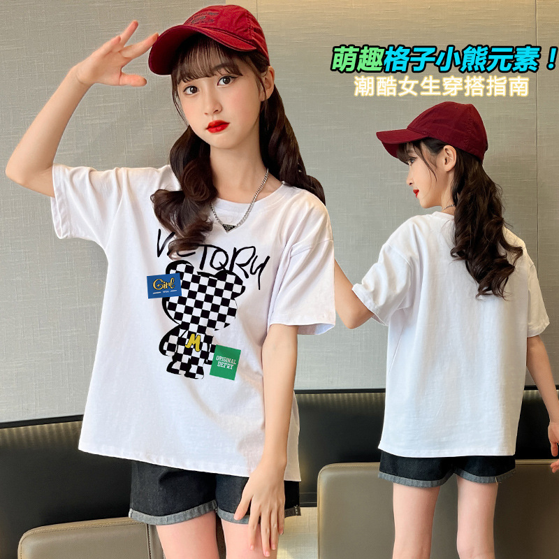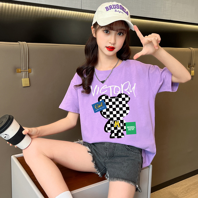 女童纯棉短袖夏季洋气半袖t儿童t恤女孩宽松卡通印花上衣中童装潮