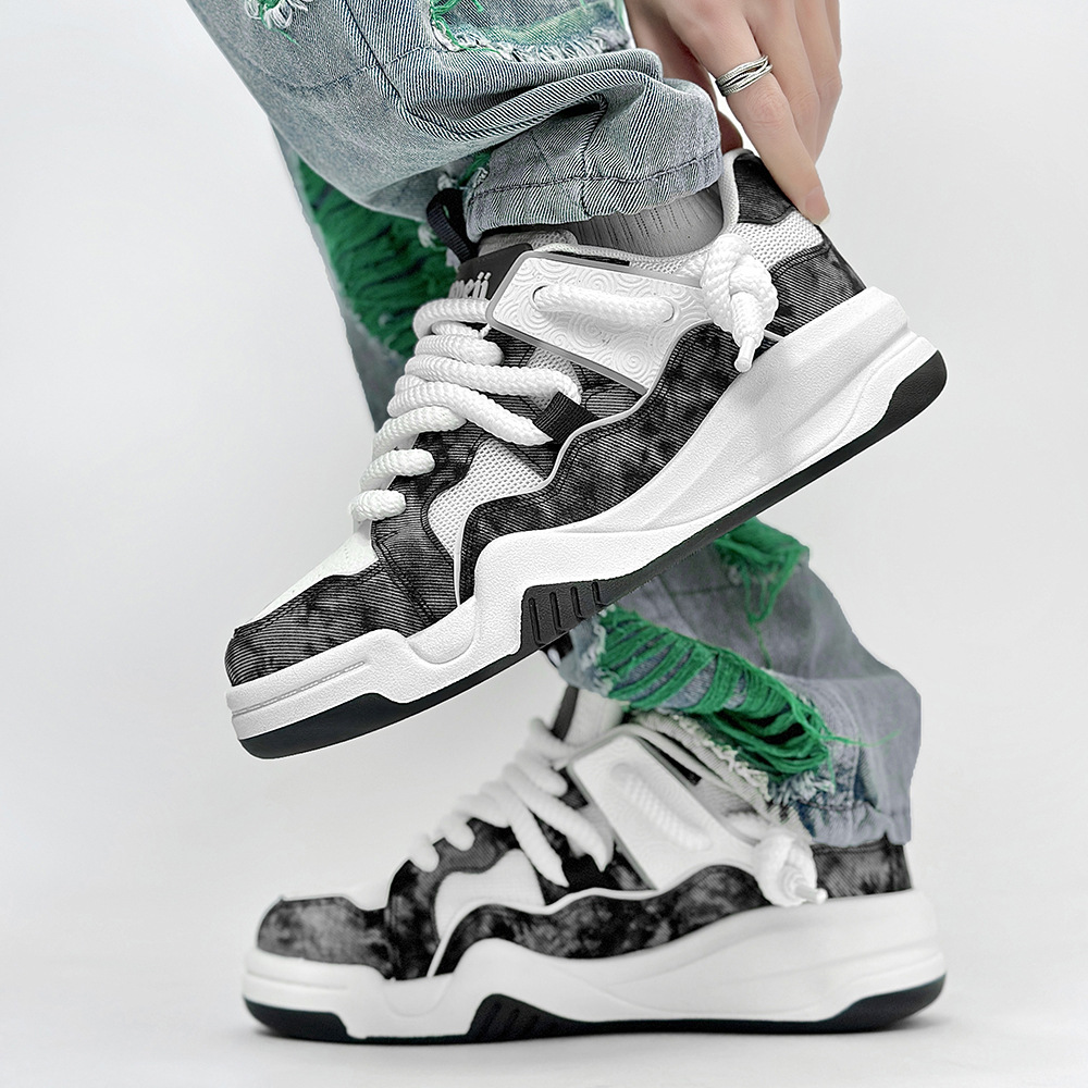 春季新款男鞋潮鞋小白鞋厚底运动鞋男潮牌透气百搭面包板鞋