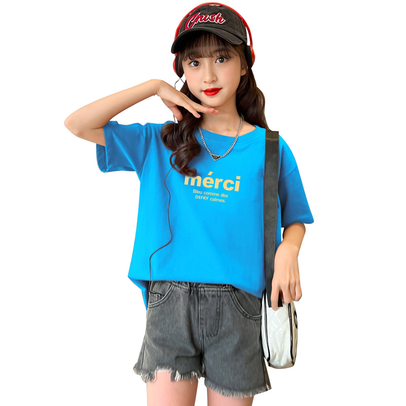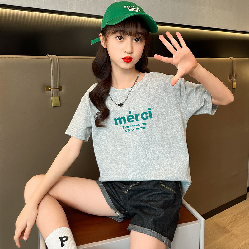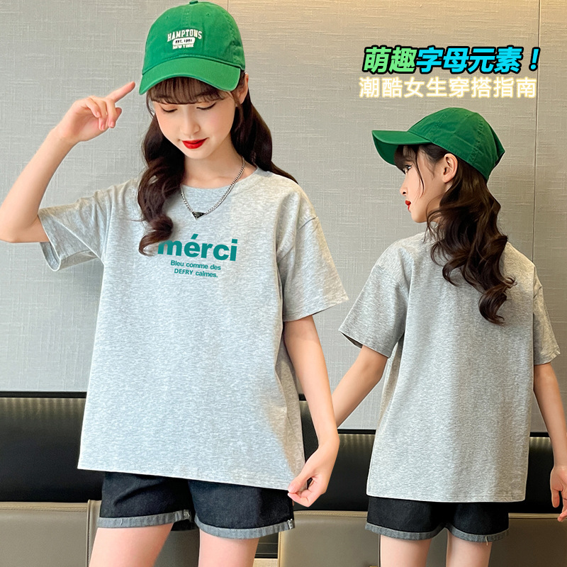 女童短袖纯棉t恤女孩宽松洋气上衣休闲圆领半袖中大童夏季童装潮