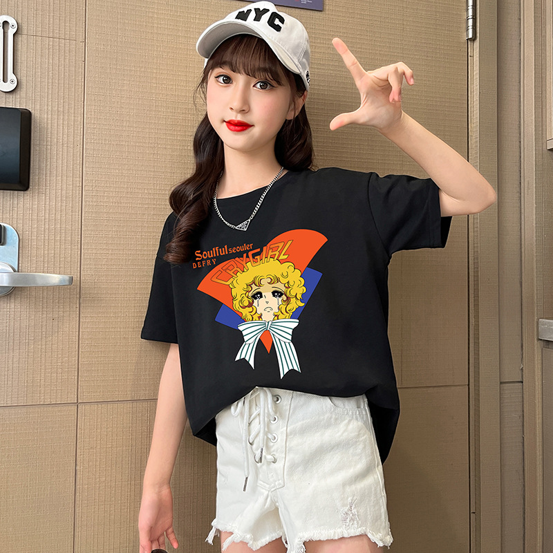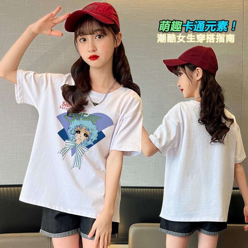 女童短袖T恤纯棉夏季新款中大童女孩儿童潮流半袖t休闲宽松上衣潮