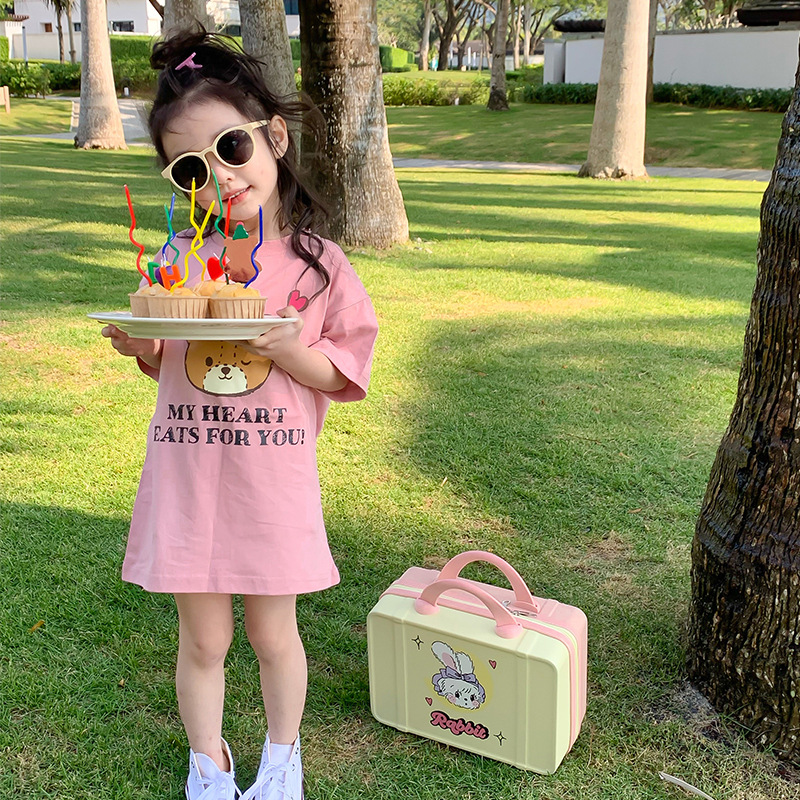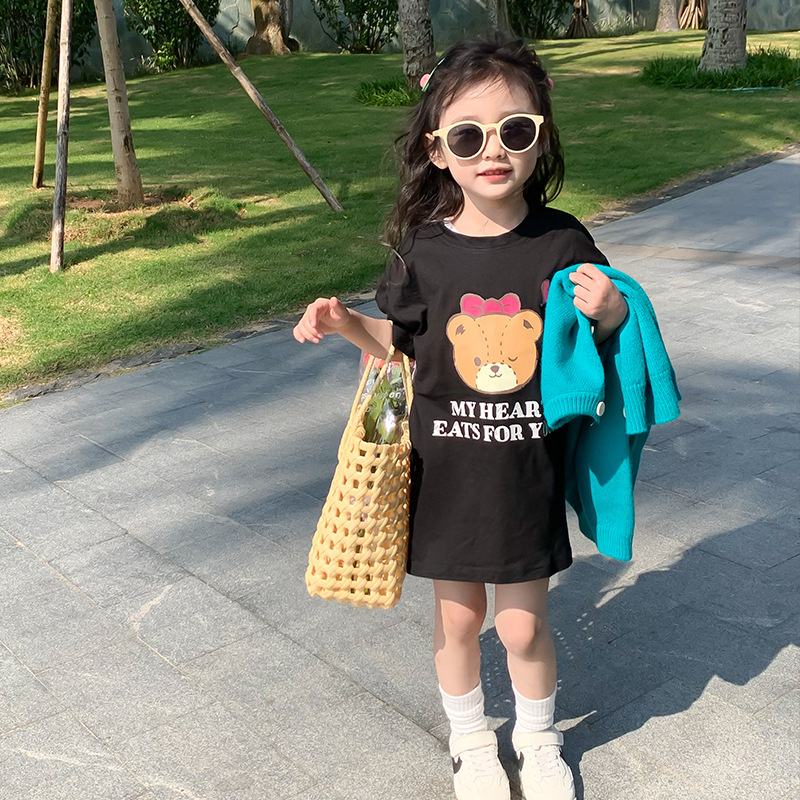 女童短袖纯棉洋气儿童t恤女童夏季宽松前后印花半袖上衣童装潮