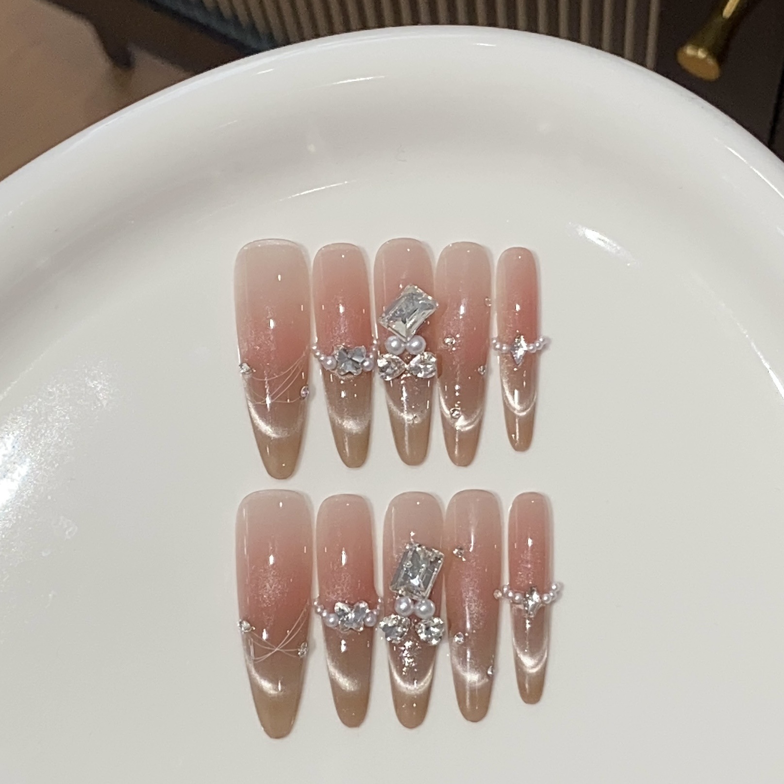 猫眼手工穿戴甲爆闪银河假指甲贴片可拆卸新娘美甲贴片成品批发