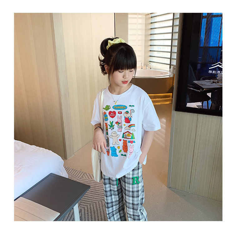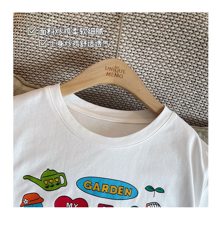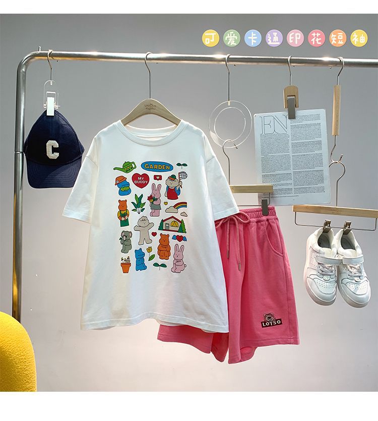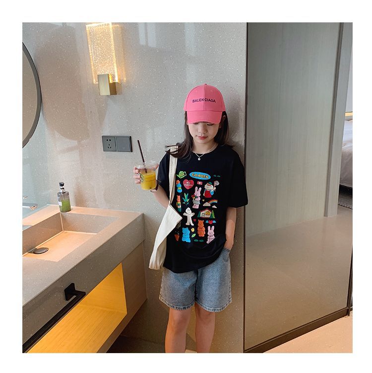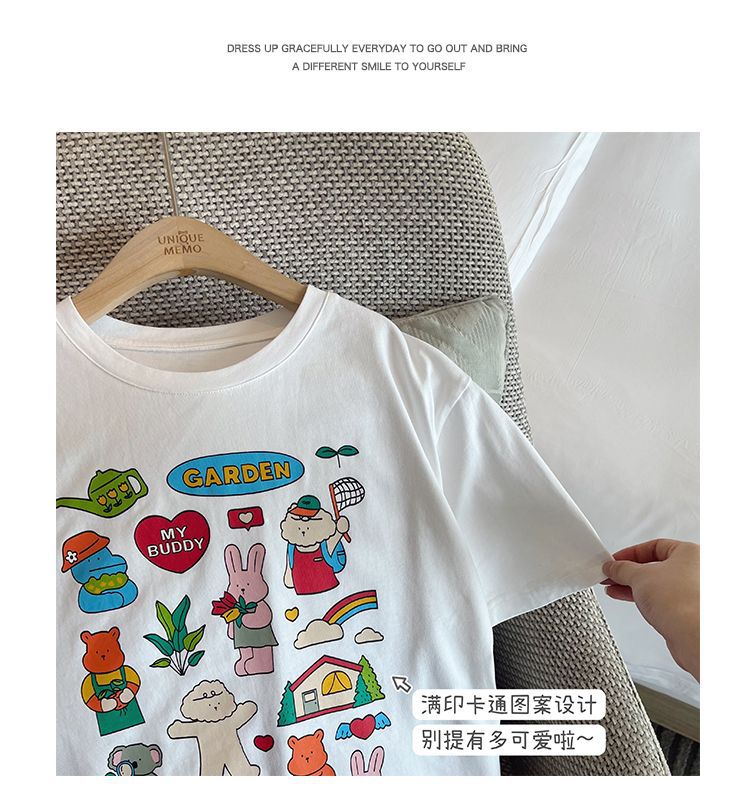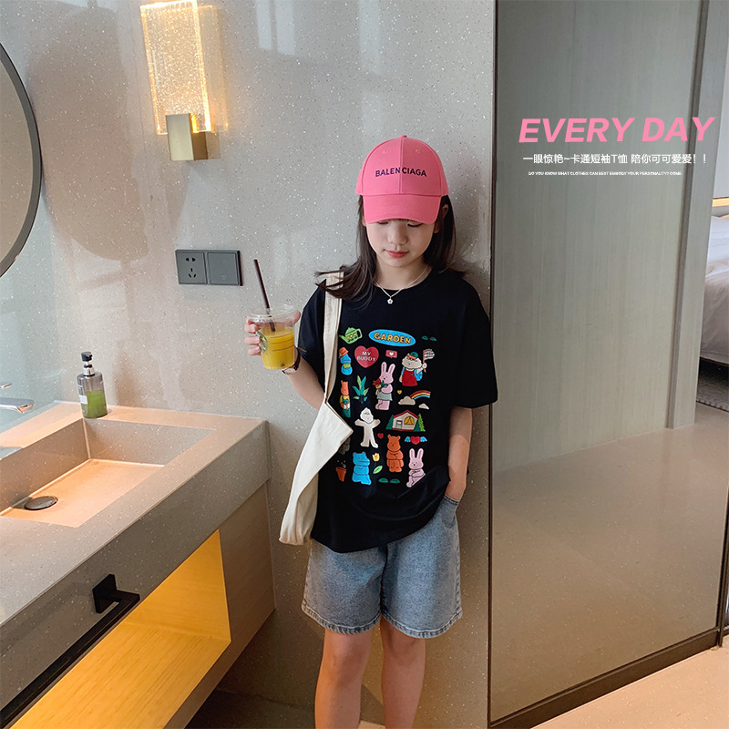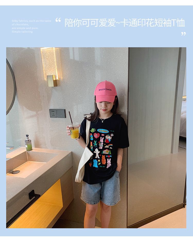 女童短袖纯棉t恤卡通印花可爱时尚儿童女孩宽松半袖上衣夏季童装