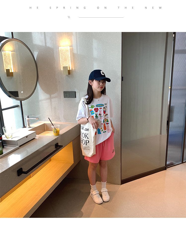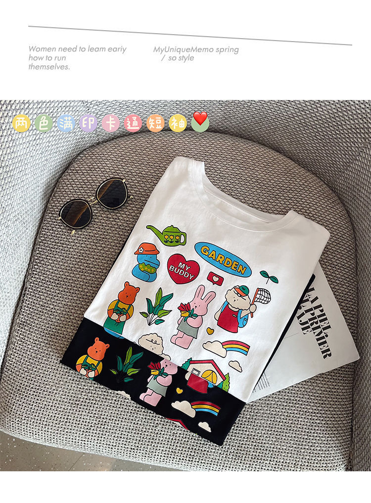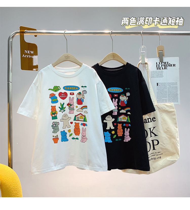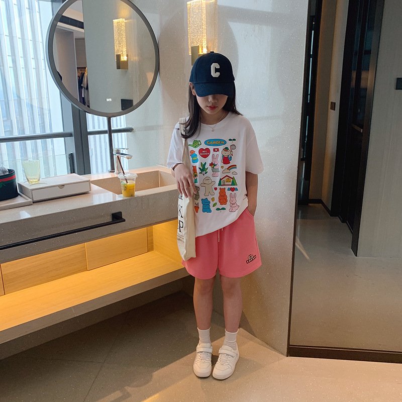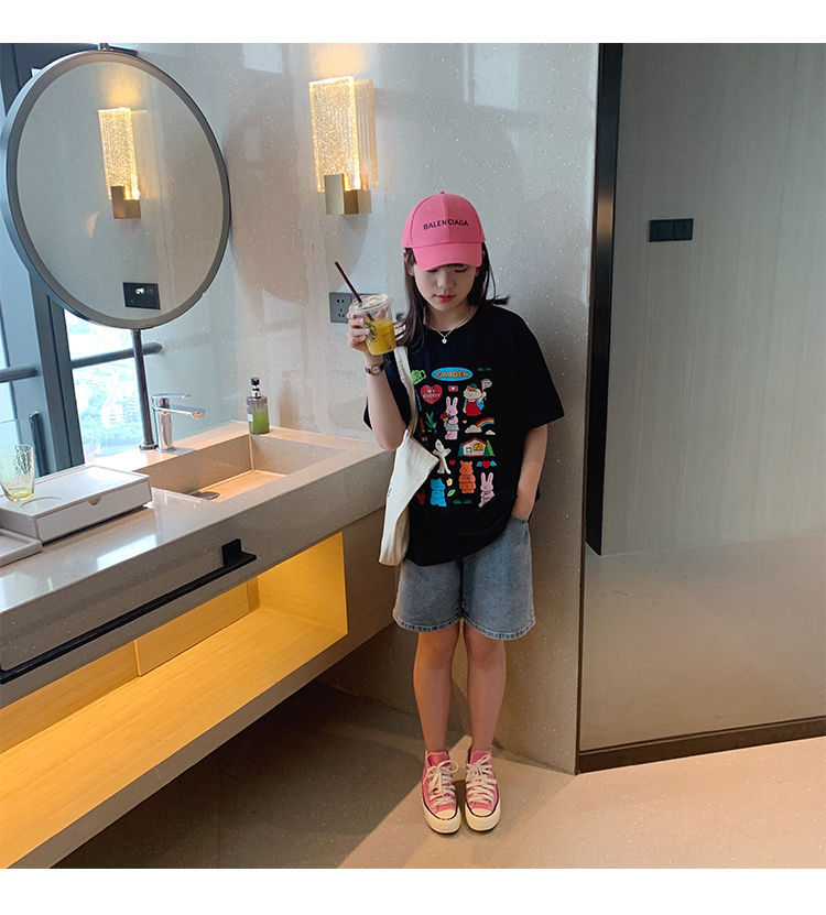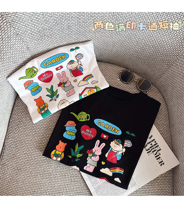 女童短袖纯棉t恤卡通印花可爱时尚儿童女孩宽松半袖上衣夏季童装