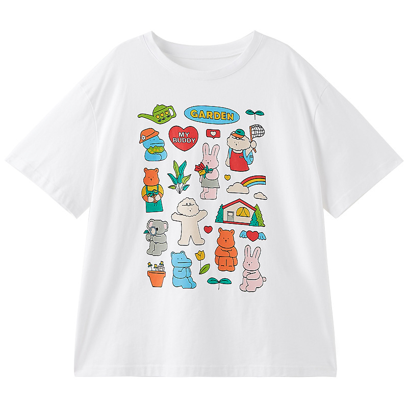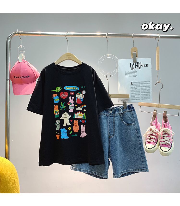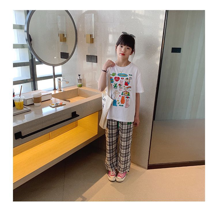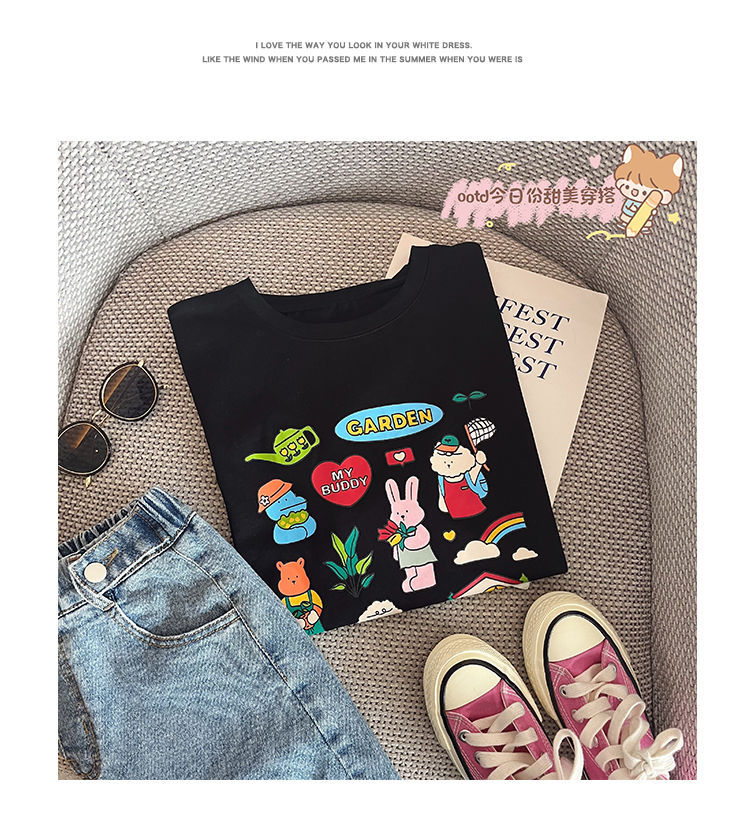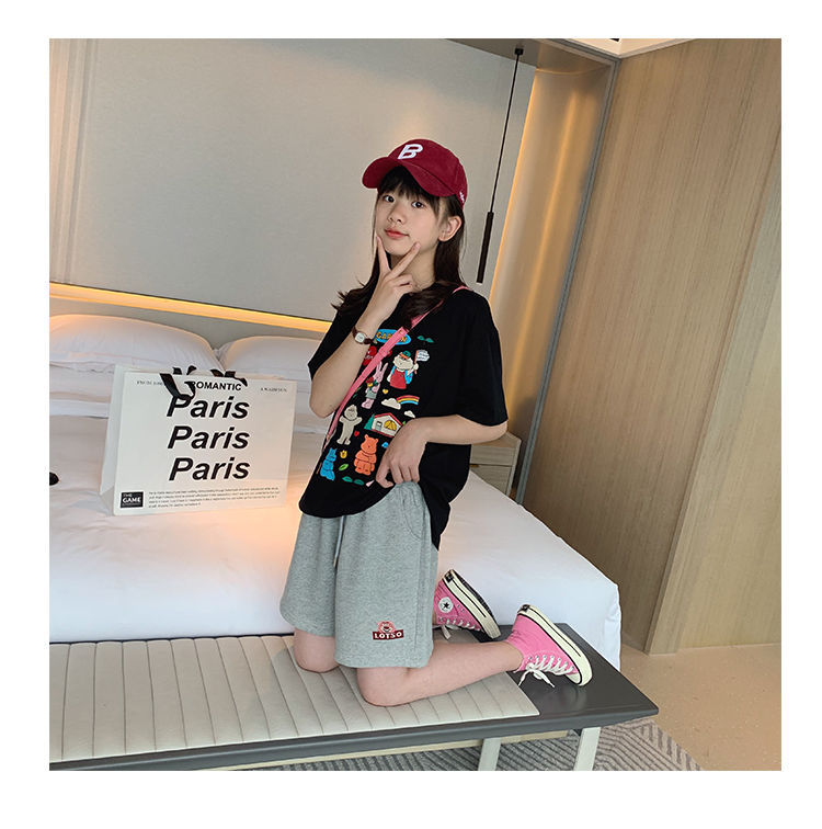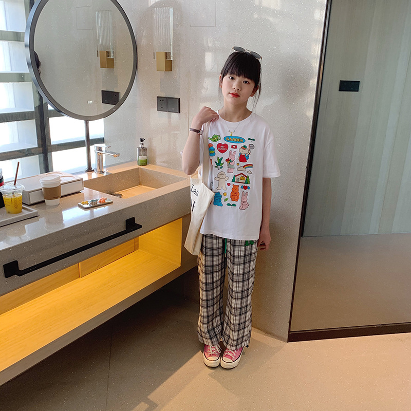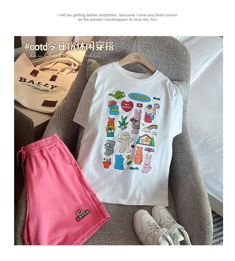女童短袖纯棉t恤卡通印花可爱时尚儿童女孩宽松半袖上衣夏季童装