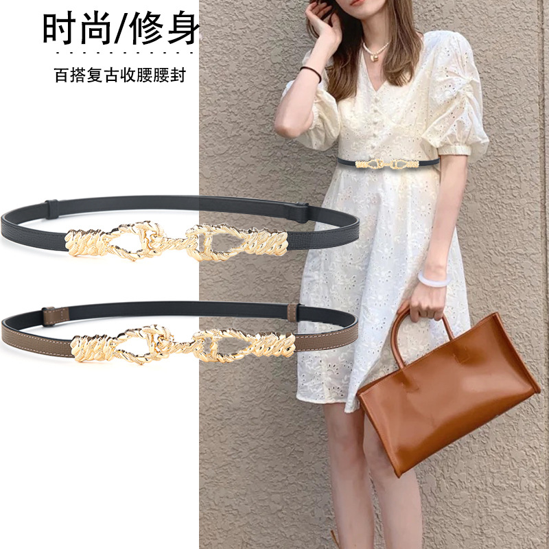 Beladeki小众轻奢免打孔调节腰带 真皮百搭装饰细腰带黑色腰封