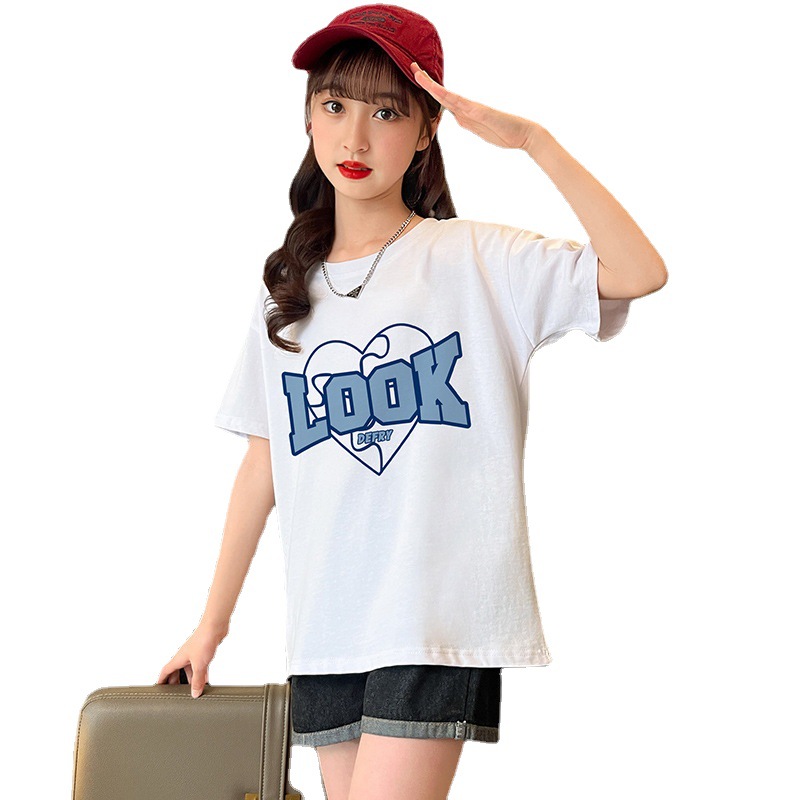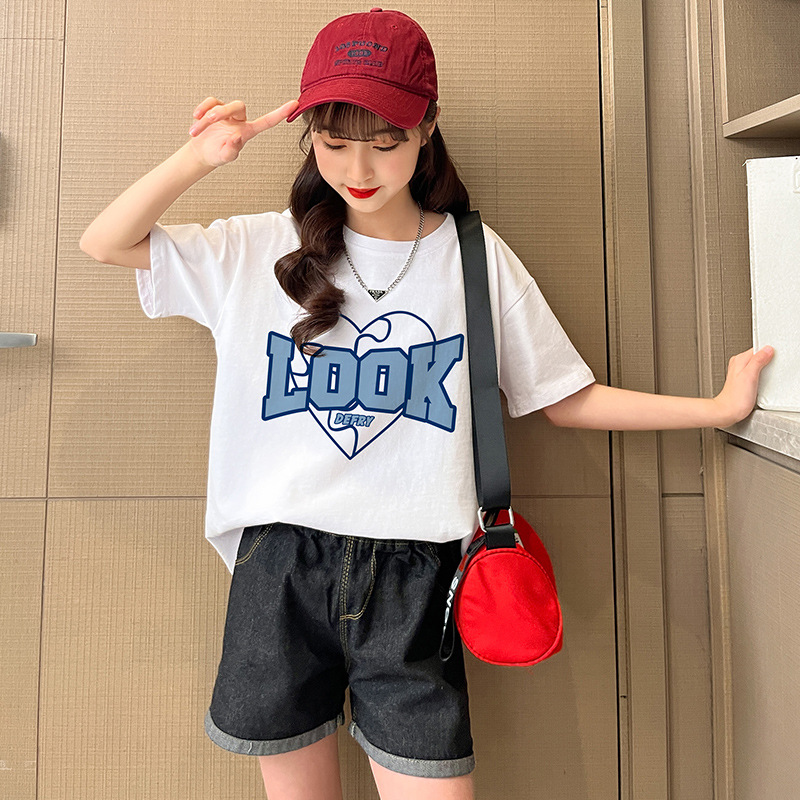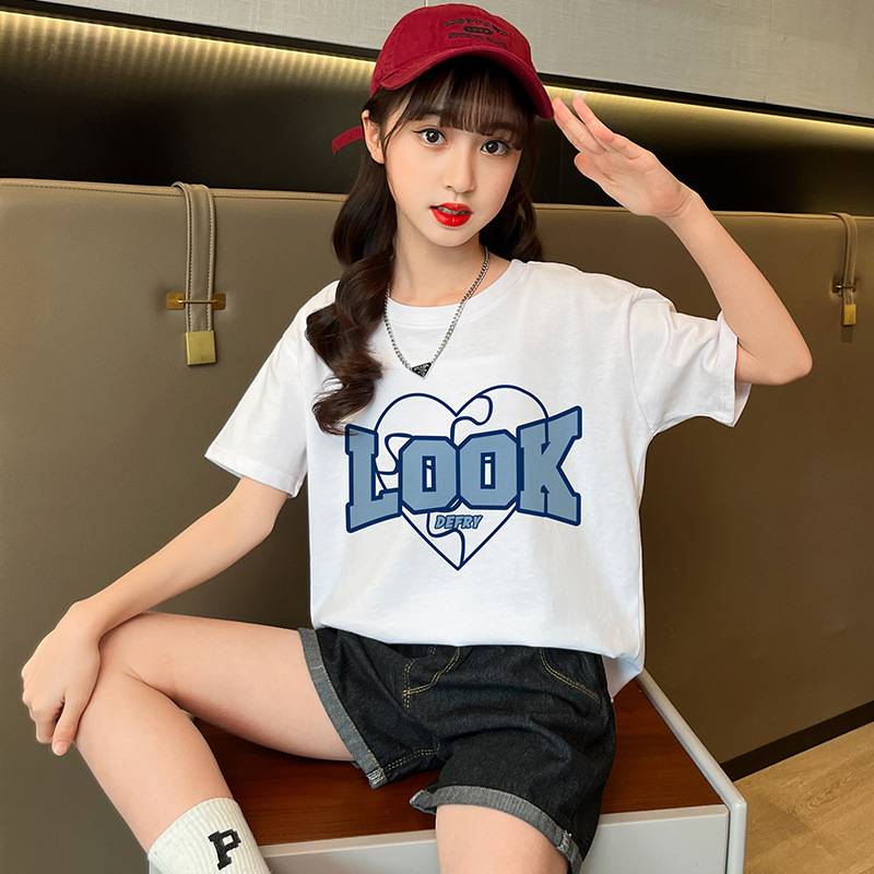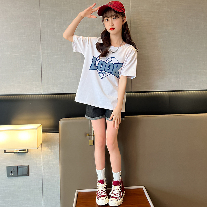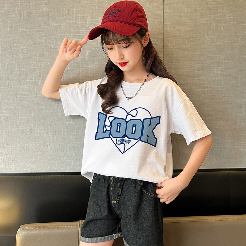 实拍女童纯棉短袖夏季宽松洋气半袖t儿童休闲t恤女孩儿童装上衣潮