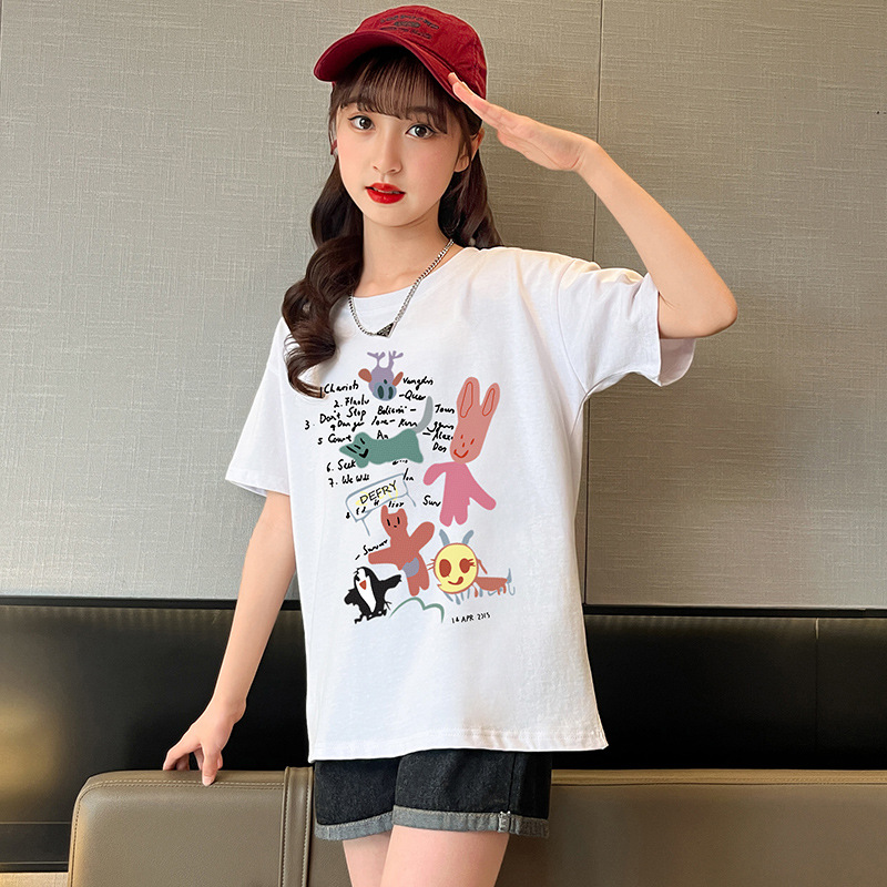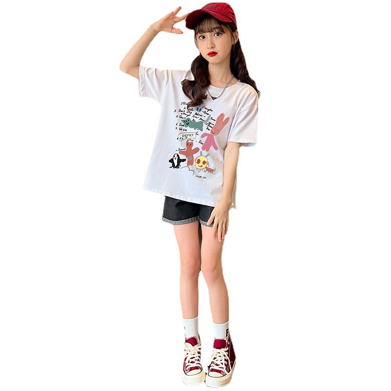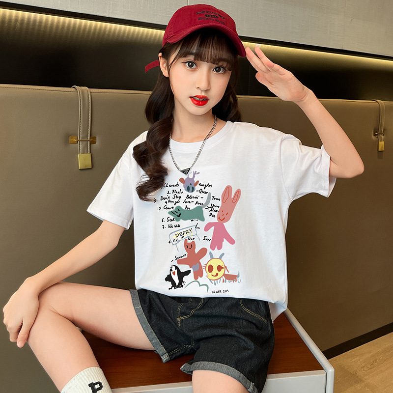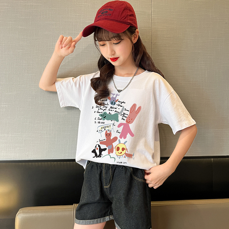 女童纯棉短袖夏季宽松洋气半袖t中大童卡通印花t恤女孩儿童装上衣