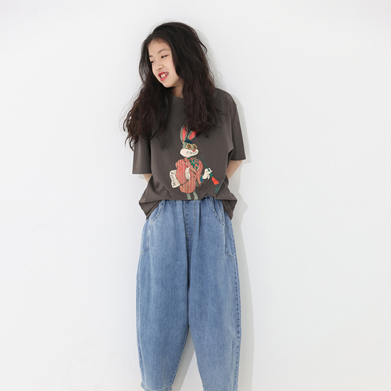 童装女童夏装短袖T恤新款宽松卡通印花儿童男孩夏季潮服大童帅气6
