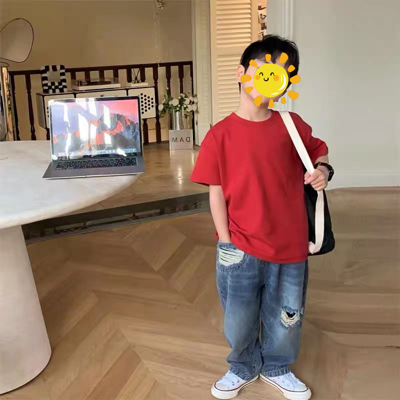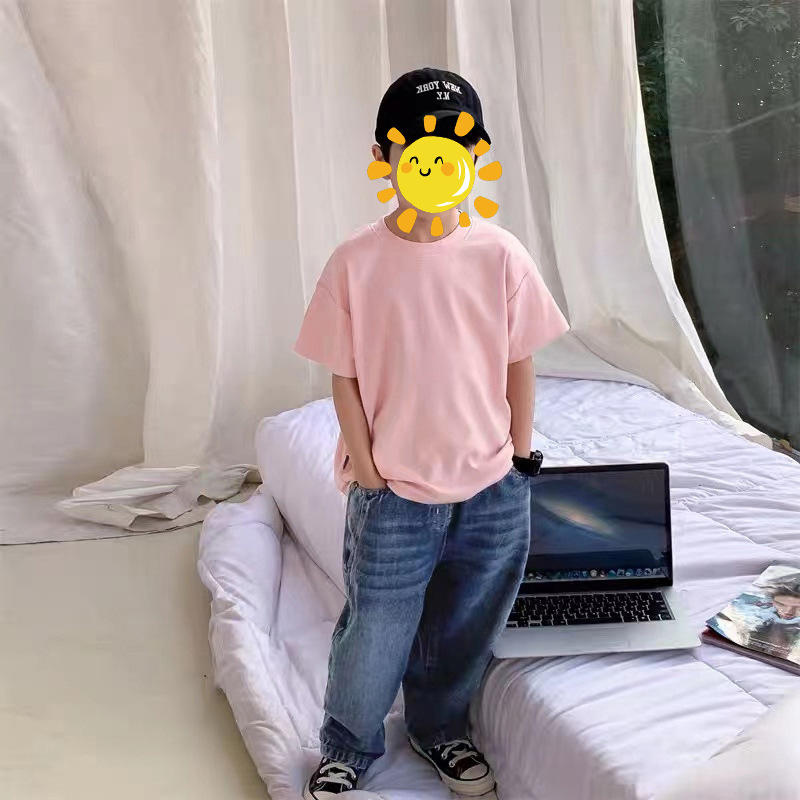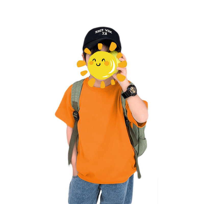含棉纯色童装男女短袖t恤衫夏季幼儿园班服儿童宝宝半袖上衣批发