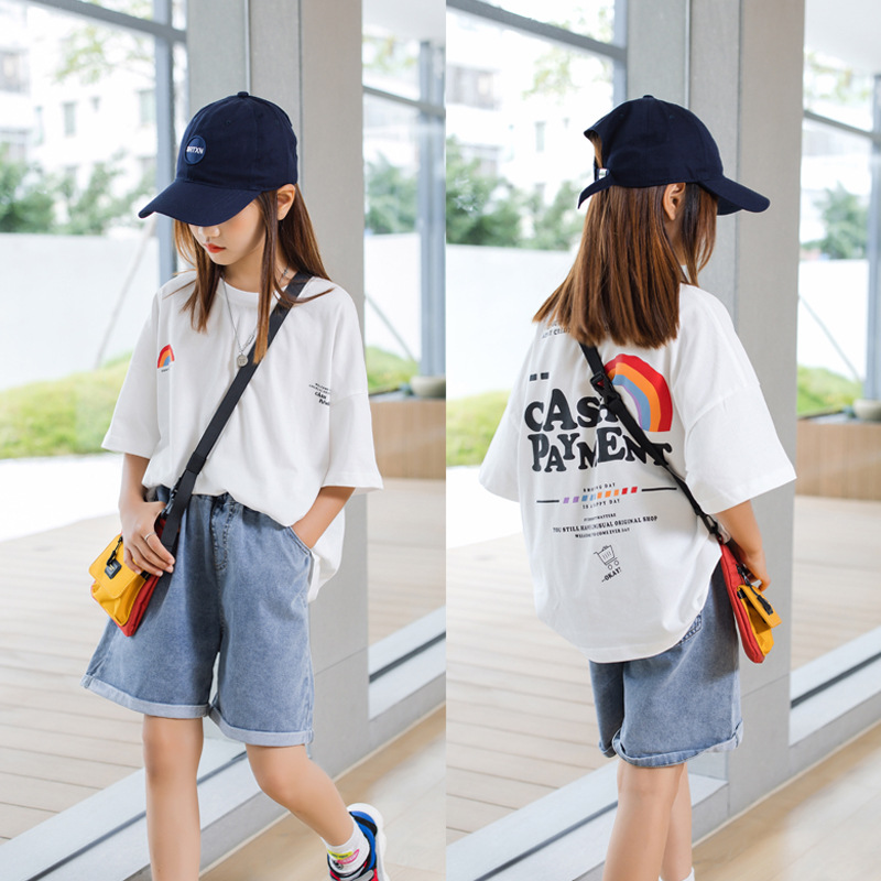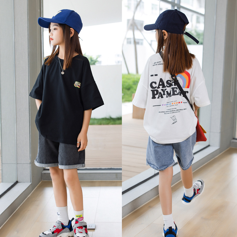 女童短袖t恤夏季新款前后印花儿童装半袖上衣炸街中大童女孩夏装