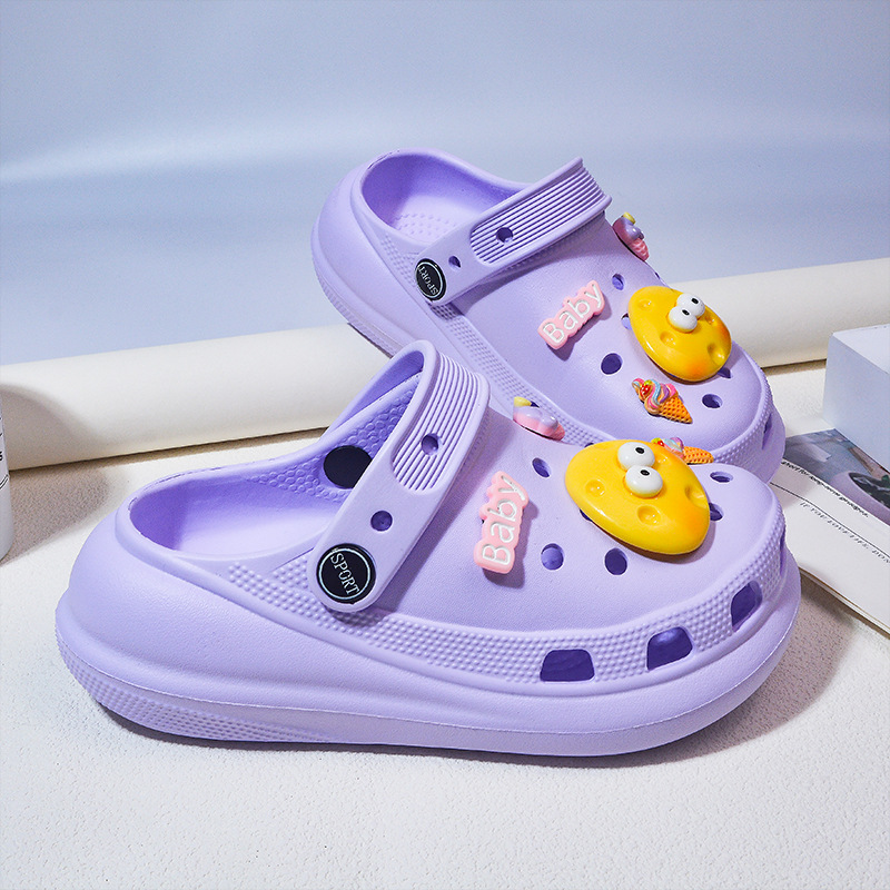 夏季洞洞鞋女童可爱diy防滑厚底卡通拖鞋室外穿休闲两用凉鞋中大