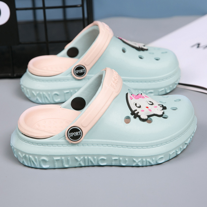 夏季洞洞鞋男儿童防滑软底拖鞋中大童室内外居家包头沙滩凉鞋女童